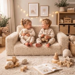 En foldesofa til børn som denne kombinerer komfort, leg og funktionalitet i ét møbel og bliver hurtigt et naturligt samlingspunkt på børneværelset.