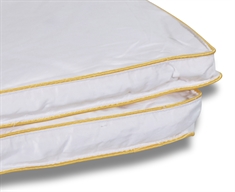 Gåsedun er en af de mest populære duntyper i Danmark og med god grund, da gåsedun er en let type dun som holder rigtig godt på varmen. Dynen er syet i 5x8 kassetter, således at dunene fordeler sig jævnt i dynen og isolerer uden kuldebroer. Denne helårsdyne er syet med 3 cm. panelkant, således at de fyldige og lette dun isolerer helt ud til dynens kant, dette optimerer udnyttelsen af varmen fra de eksklusive gåsedun. Dynen har en bæreevne på over 12, hvilket er et godt udtryk for dynens kvalitet. Den høje bæreevne er samtidig med til at lade kroppen ånde natten igennem. Bolstret er af 100% blødt og lækkert bomuldssatin, som er så tætvævet at husstøvmider ikke kan trænge igennem.