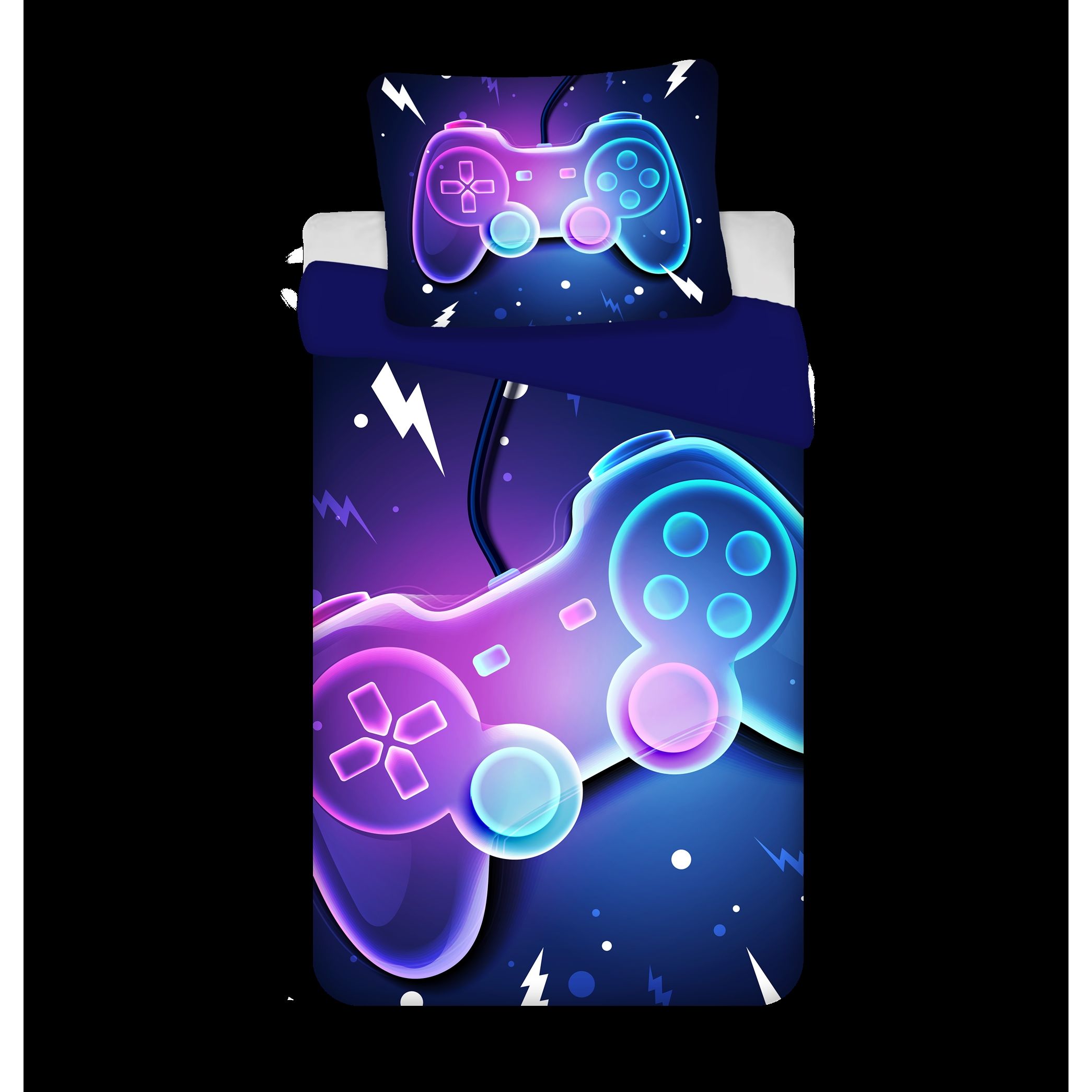 Skab en hyggelig atmosfære på børneværelse med dette sengesæt. Sengesætte er vendbart. Med et sjovt design af en controllor på forsiden og ensfarvet bagside, vil dette sengetøj helt sikkert gøre sengetid til en glædelig oplevelse. Det er altid en god ide at gøre brug af barnets interesser, hvis man ønsker at skabe et tryggere og mere spændende sovemiljø til sit barn.