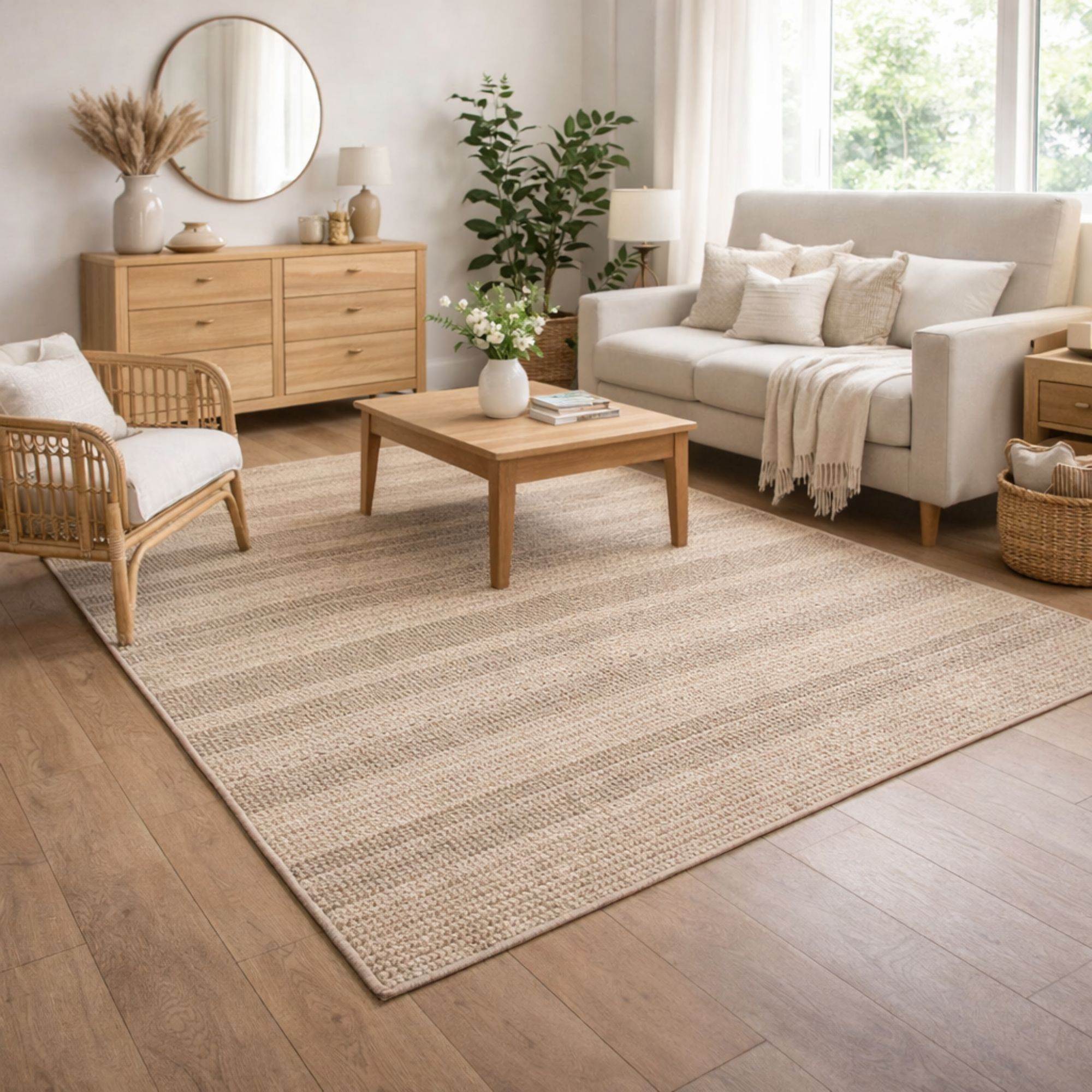 Savner du en enkel og nem måde at skabe noget helhed i dit hjem? Så kan dette flotte gulvtæppe kan være dét element, der binder indretningen sammen.