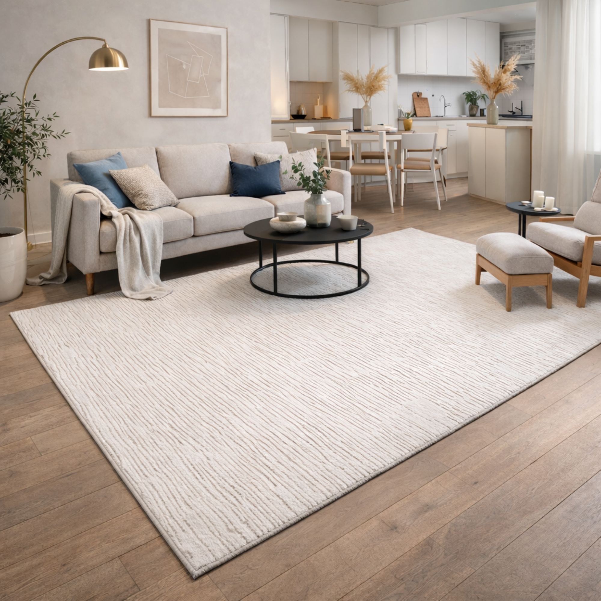 Savner du en enkel og nem måde at skabe noget helhed i dit hjem? Så kan dette flotte gulvtæppe kan være dét element, der binder indretningen sammen.