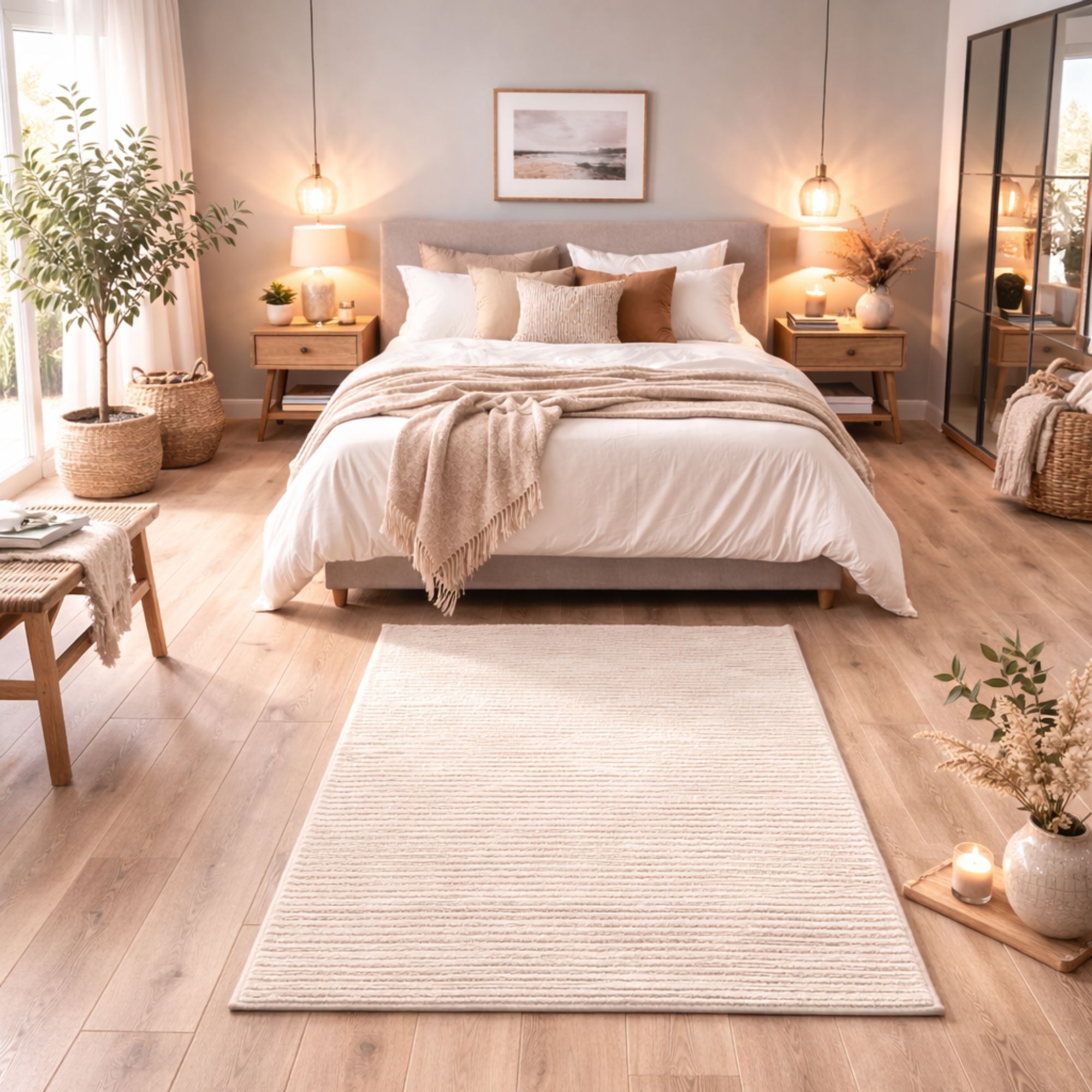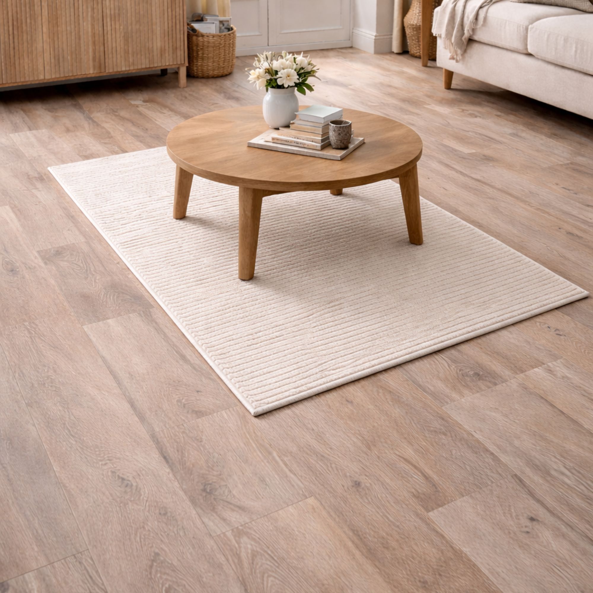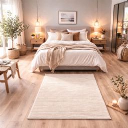 • Blødt og stilfuldt gulvtæppe i cremefarve