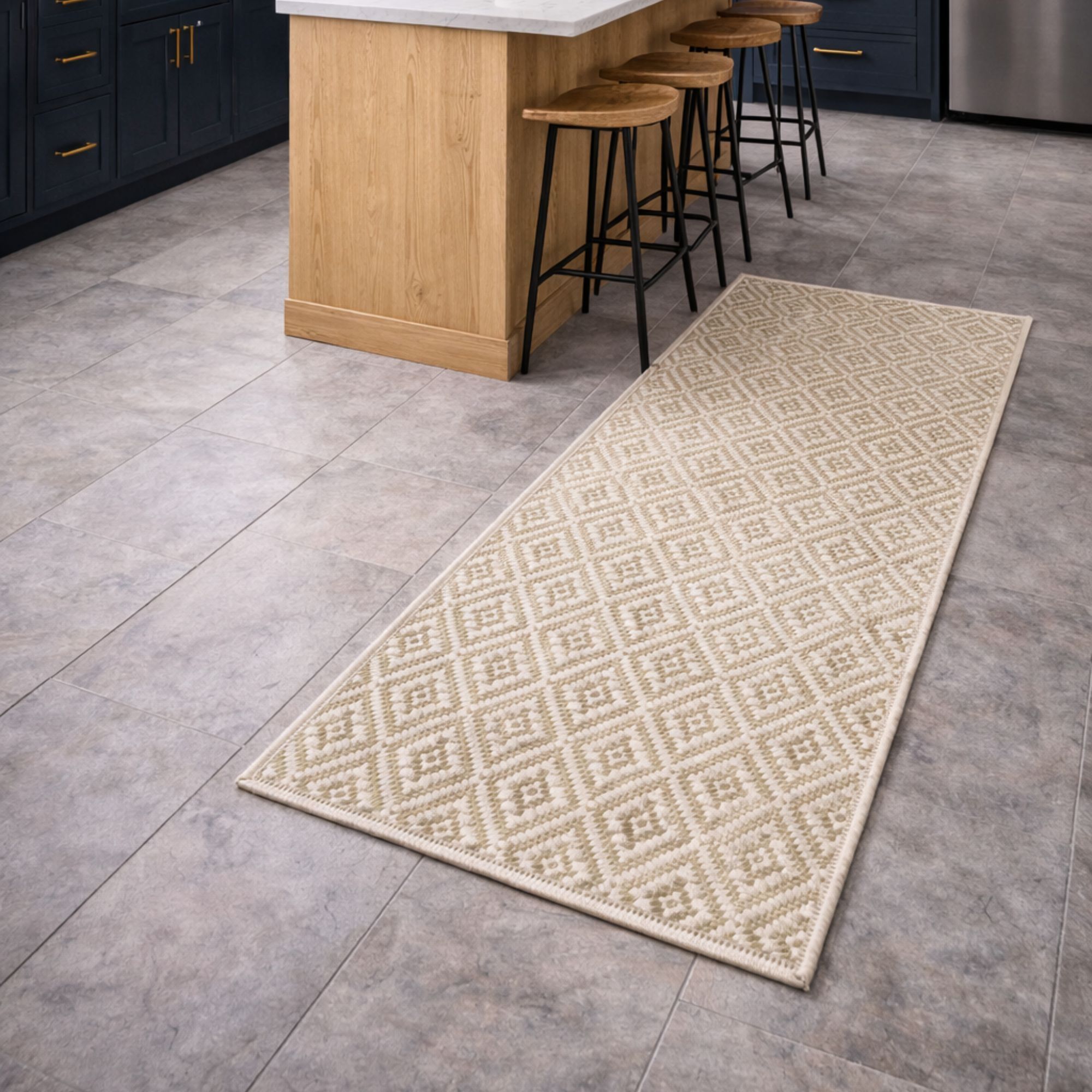 Savner du en enkel og nem måde at skabe noget helhed i dit hjem? Så kan dette flotte gulvtæppe kan være dét element, der binder indretningen sammen.