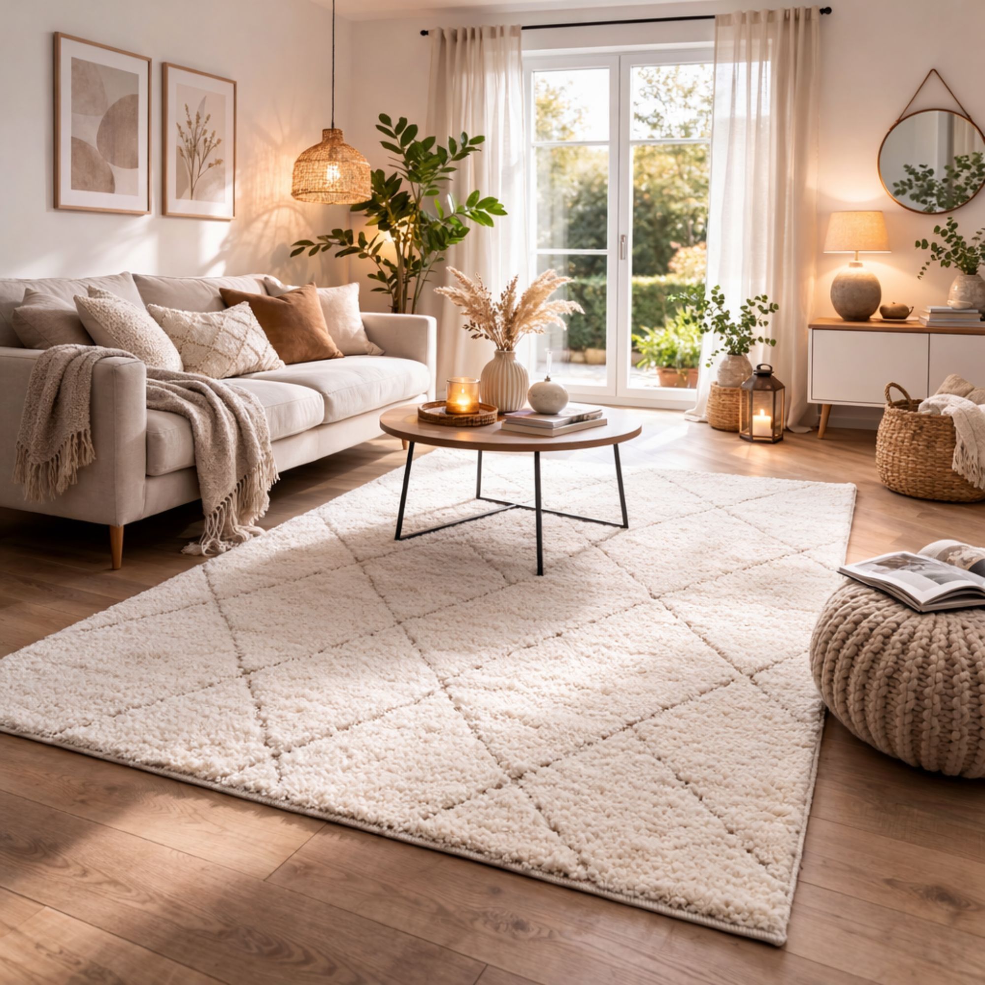 Savner du en enkel og nem måde at skabe noget helhed i dit hjem? Så kan dette flotte gulvtæppe kan være dét element, der binder indretningen sammen.