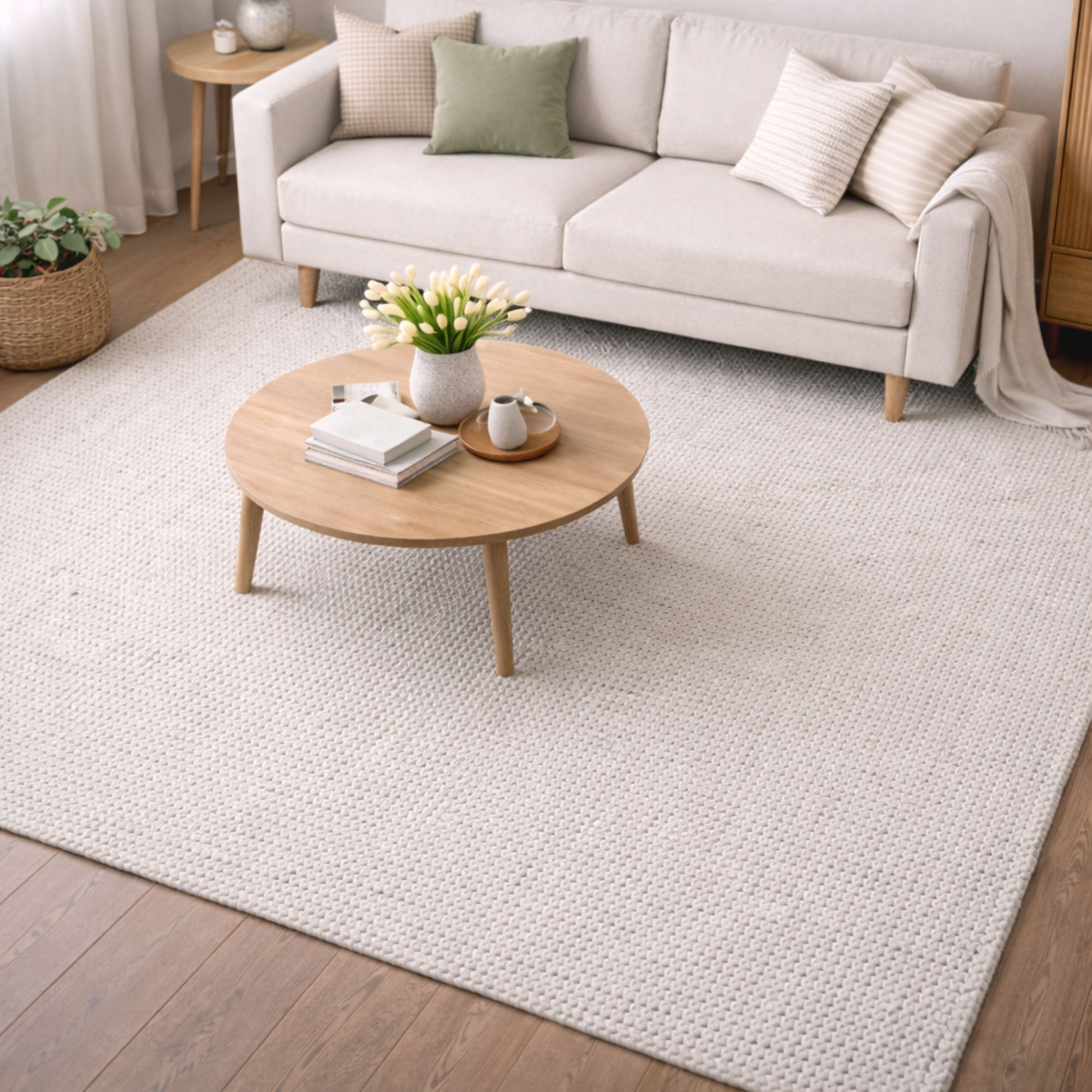 Et fladvævet gulvtæppe i 60% uld og 40% bomuld er et rigtig godt valg, hvis indretningen derhjemme trænger til mere varme og sammenhæng. De udvalgte fibre og den tætte vævning giver et slidstærk materiale og en holdbar kvalitet, som egner sig godt til både stue, spiseområde og soveværelse. Tæppet er elegant og samtidig praktisk i hverdagen, da materialet gør det nemt at vedligeholde. Regelmæssig støvsugning er tilstrækkeligt for at bevare det pæne udseende, og den tætte vævning gør, at snavs og støv har svært ved at trænge ned i materialet.