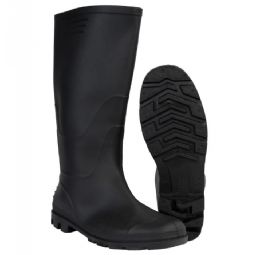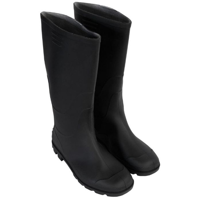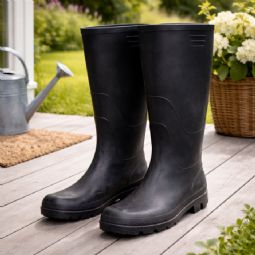 Sorte gummistøvler i klassisk unisex design, der kombinerer funktionalitet og komfort til hverdagsbrug. Disse gummistøvler i størrelse 46 er fremstillet i slidstærk PVC, som effektivt holder dine fødder tørre i vådt vejr.