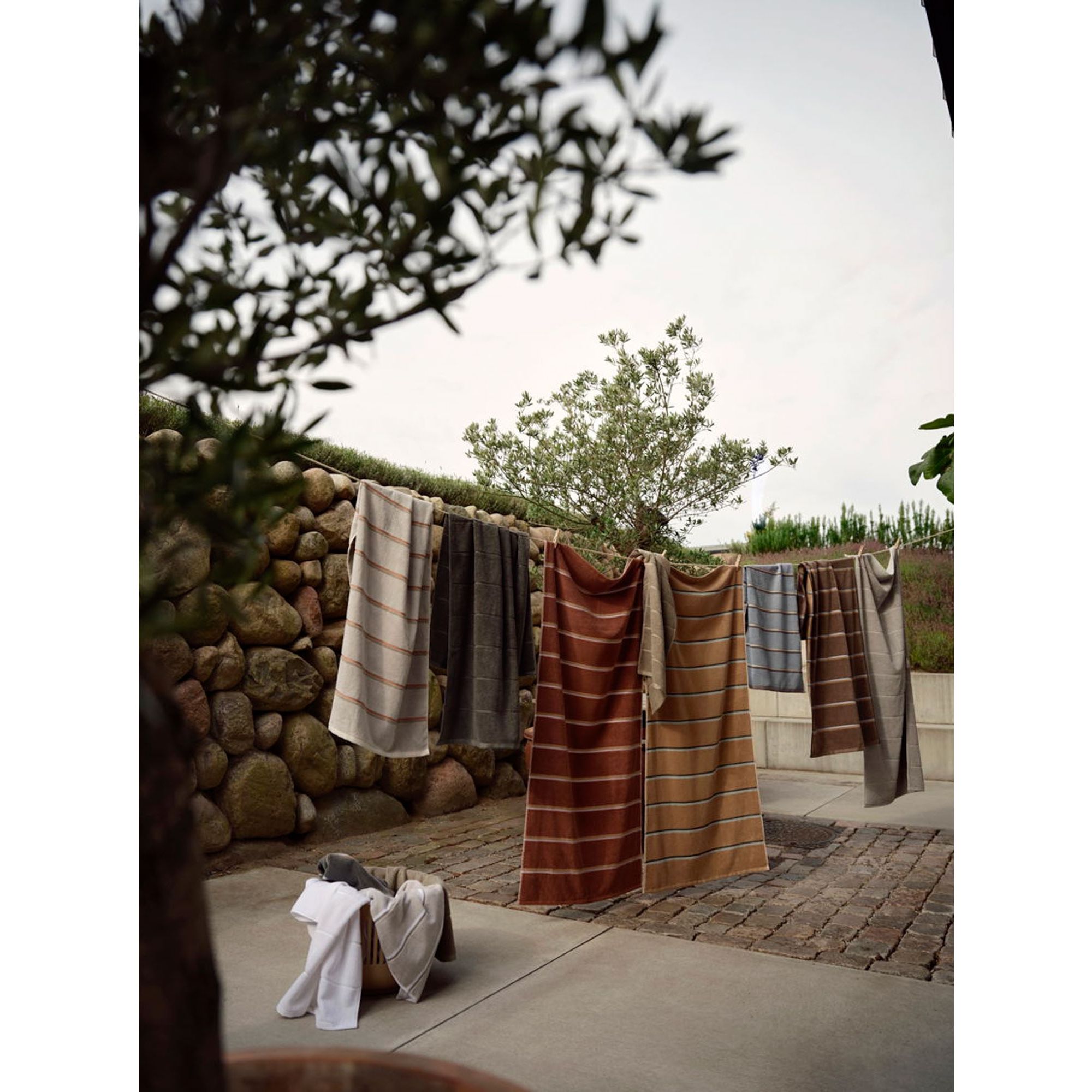 Den høje bomuldskvalitet giver en god absorberingsevne og er behagelig at tørre sig med efter badet. Designet er inspireret af de rene linjer fra klassiske saunaer og kombinerer funktionalitet med et moderne grafisk udtryk. Håndklædet er OEKO-TEX® certificeret, hvilket er din garanti for, at produktet er fri for skadelige kemikalier og sikkert at bruge mod huden.