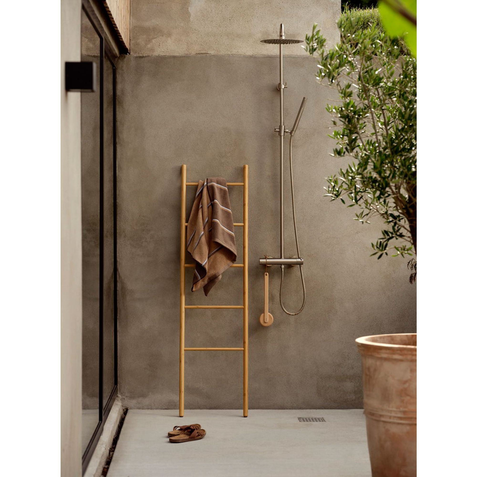 Den høje bomuldskvalitet giver en god absorberingsevne og er behagelig at tørre sig med efter badet. Designet er inspireret af de rene linjer fra klassiske saunaer og kombinerer funktionalitet med et moderne grafisk udtryk. Håndklædet er OEKO-TEX® certificeret, hvilket er din garanti for, at produktet er fri for skadelige kemikalier og sikkert at bruge mod huden.