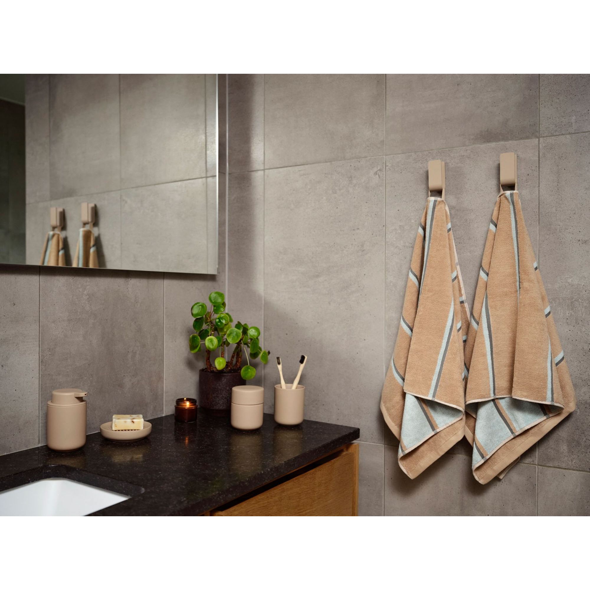 Tilføj karakter og luksus til dit badeværelse med dette stilfulde Sauna håndklæde fra Zone Denmark. Det grafiske design med striber i fine farver skaber et moderne og personligt udtryk. Håndklædet vil være ideelt som et lidt større håndklæde ved vasken, hvor det hurtigt og effektivt tørrer hænder efter brug, eller som et mindre håndklæde at tørre sig i efter badet.