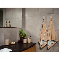 Håndklædet er fremstillet i 100% bomuld med en kraftig kvalitet på 600 g/m², som sikrer en blød, fyldig og luksuriøs følelse mod huden. Det dobbeltsidede design giver dig to forskellige udtryk i ét håndklæde. Hver side har sin egen dominerende farve, så du nemt kan variere looket i dit badeværelse.