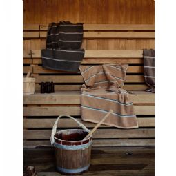 Den høje bomuldskvalitet giver en god absorberingsevne og er behagelig at tørre sig med efter badet. Designet er inspireret af de rene linjer fra klassiske saunaer og kombinerer funktionalitet med et moderne grafisk udtryk. Håndklædet er OEKO-TEX® certificeret, hvilket er din garanti for, at produktet er fri for skadelige kemikalier og sikkert at bruge mod huden.