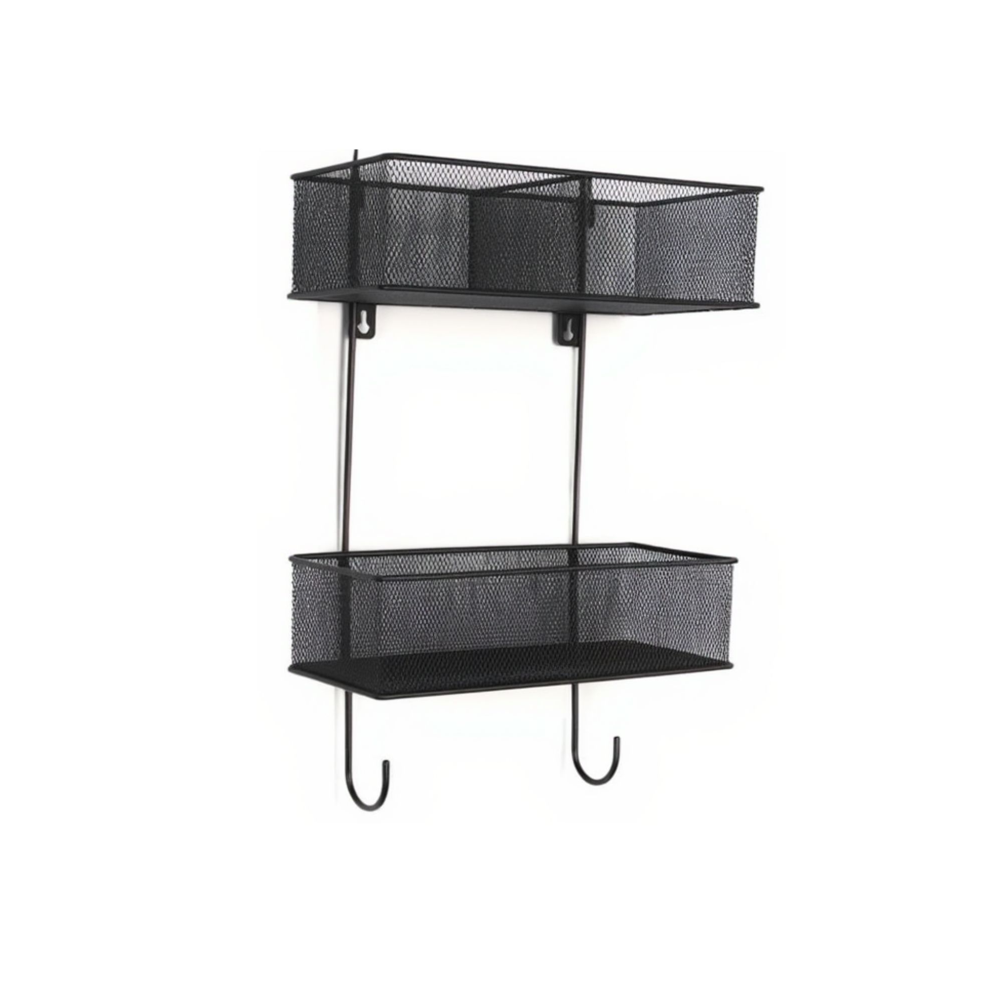 En smart opbevarings løsning som denne kan hænges op i de fleste rum uden at fylde, og let at have overblik over indholdet pga. det smarte tråd design. Denne trådkurv er f.eks. praktisk på badeværelser, i køkkenet eller på børneværelset. Uanset hvor den skal bruges, har den mange muligheder med de to kurve inddelt i to rum hver, og to dybe kroge.