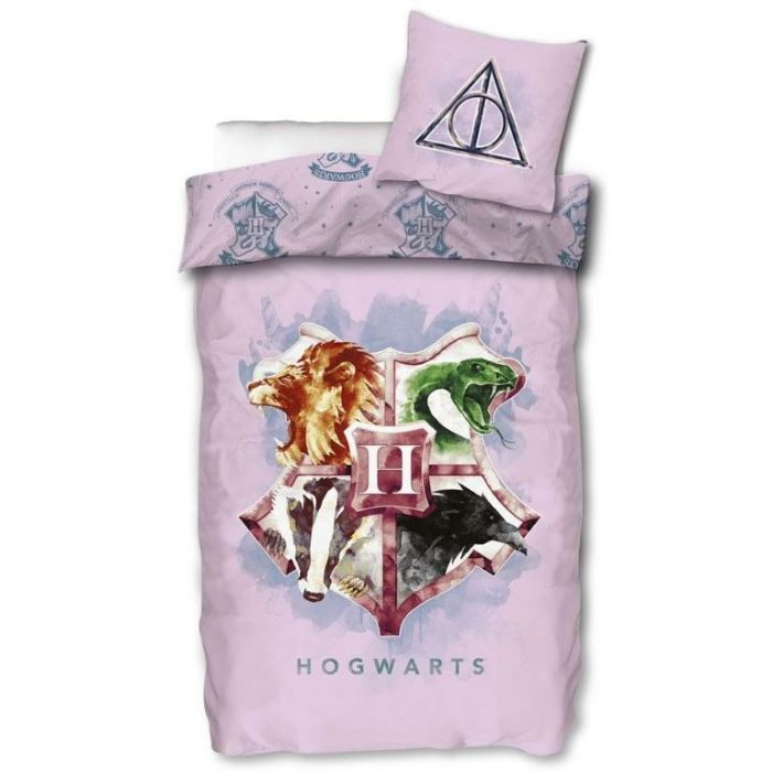 Sengesættet til en ægte Harry Potter fan. Stort billede af det berømte Hogwarts våbenskjold. Kom tættere på historien og drøm dig ind i den magiske og forunderlige verden, med dette seje sengetøj.