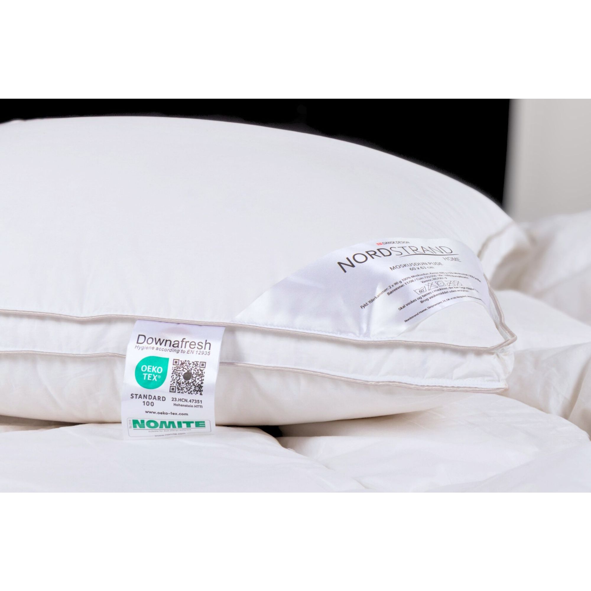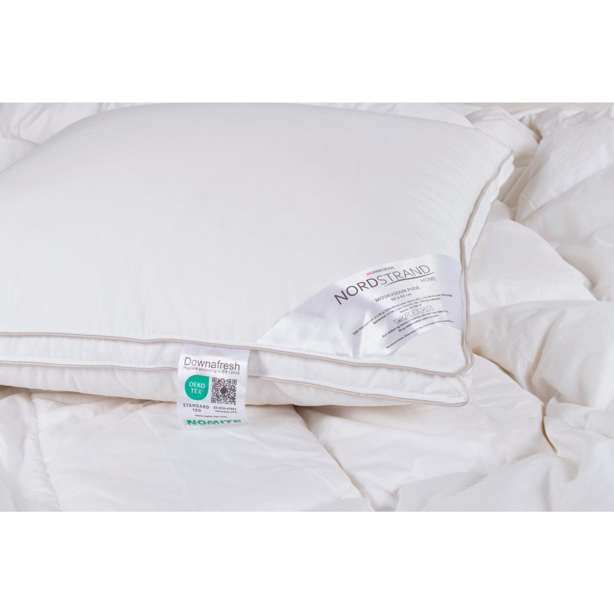 I hovedpudens yderste kamre finder du lækre små bløde 100% rene moskusdun, som giver puden en dejlig blød flade at ligge på - på begge sider. De bløde dun tilpasser sig godt efter dig, hvilket giver ekstra komfort der hvor du hviler dit hoved. Det fine bomuldssatin bolster, gør at pudens overflade føles rigtig blød. Den tætte vævning og de rene dun (inkl. DOWNAFRESH & NOMITE certificeringen) gør desuden, at puden også er velegnet til allergikere.