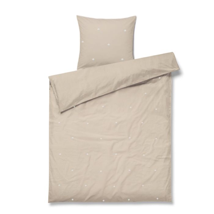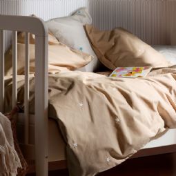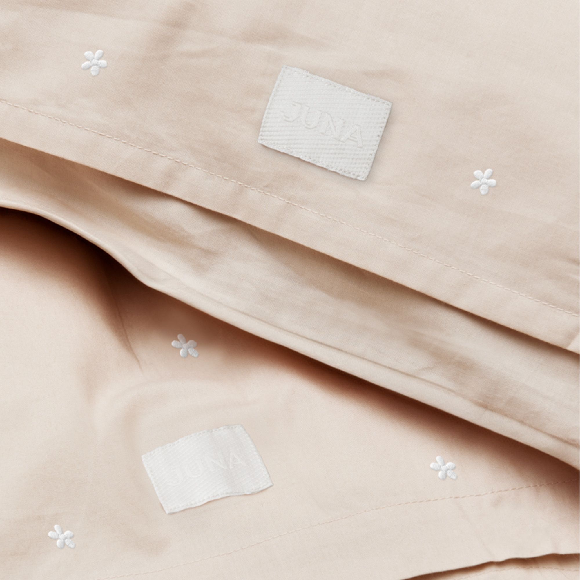 Skab en tryg og drømmende nattesøvn med dette smukke juniorsengetøj fra JUNA Daisy serien. Det klassiske sandfarvet design med broderede hvide blomster giver et tidløst og roligt udtryk. Sengesættet er fremstillet i 100% økologisk bomuld i en eksklusiv percalevævning, som sikrer en blød, glat og åndbar kvalitet.