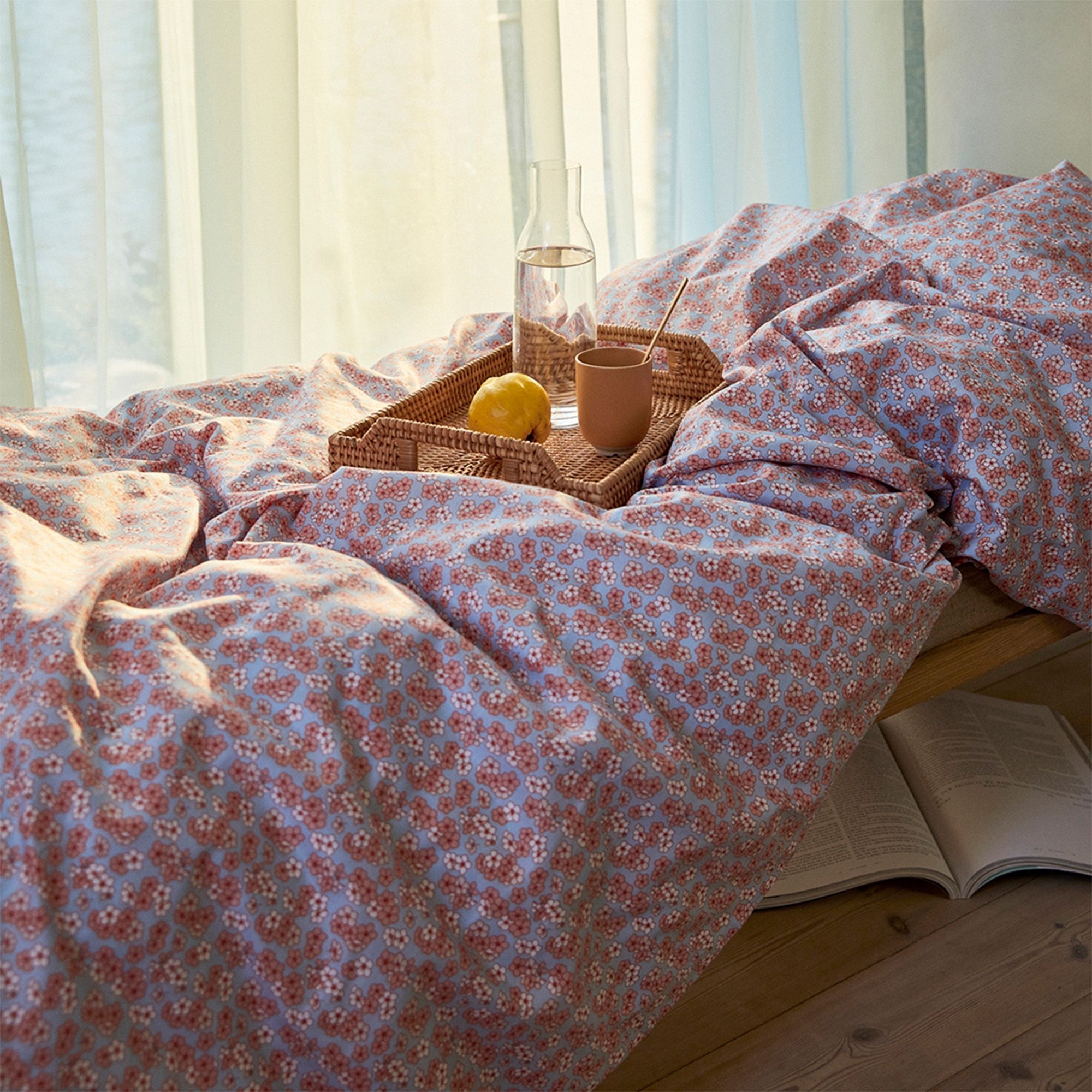 Skab en frisk og harmonisk stemning i soveværelset med dette smukke sengetøj med ekstra længde fra JUNA Pleasantly serien. Det elegante blomsterprint på en blå bund tilfører både liv og ro til din indretning. Sengesættet er fremstillet i 100% økologisk bomuldssatin, som giver en silkeblød og glat overflade med en let glans. Materialet føles behageligt mod huden og sikrer en komfortabel nattesøvn nat efter nat.