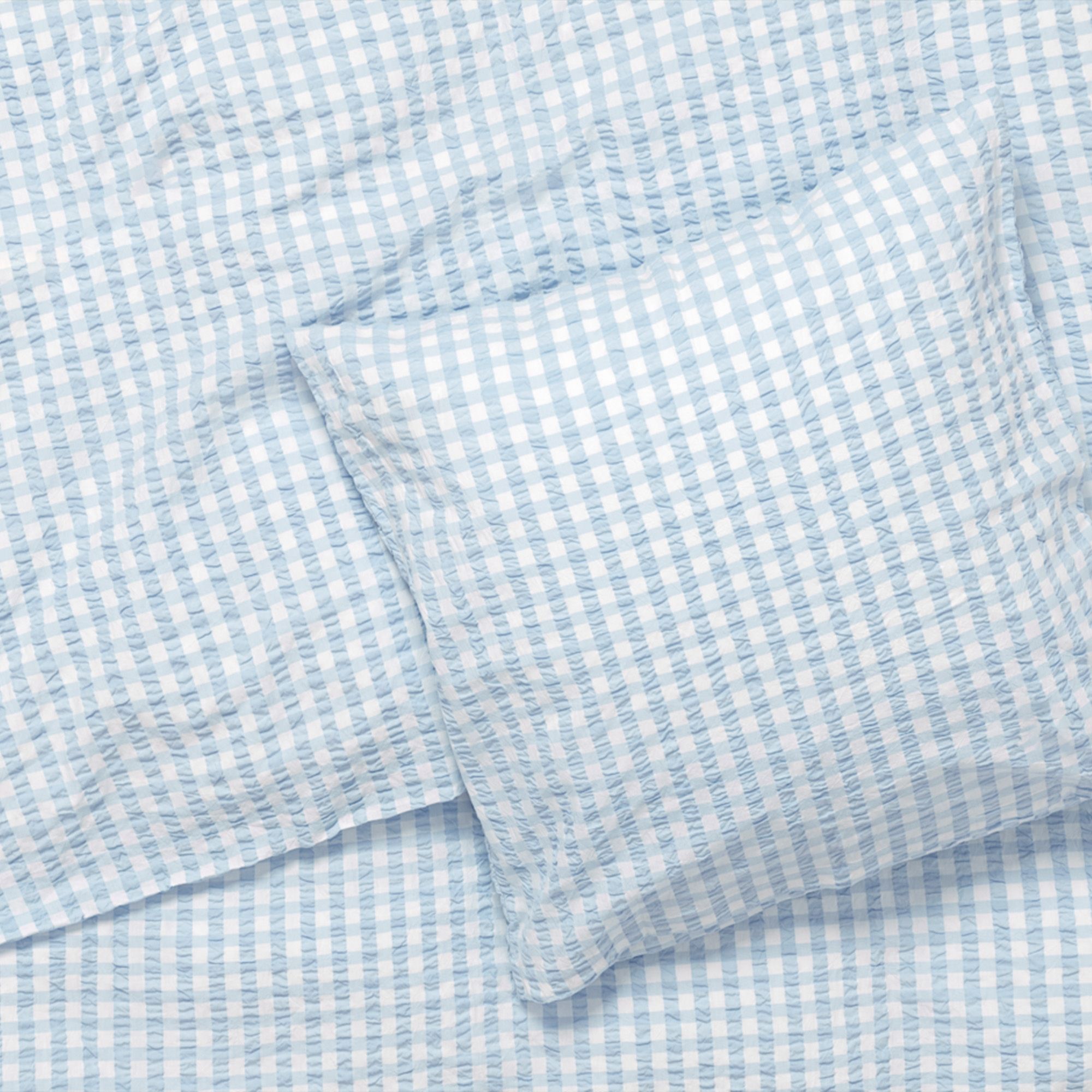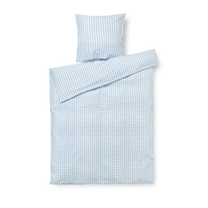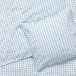 Det bløde bomuld kombineret med den krøllede struktur giver en unik følelse af luksus. Samtidig er sengetøjet praktisk i hverdagen, da det ikke kræver strygning og holder sit flotte udtryk vask efter vask. De fine tern i lyseblå giver et roligt og stilrent look, der passer ind i både moderne og klassiske soveværelser.