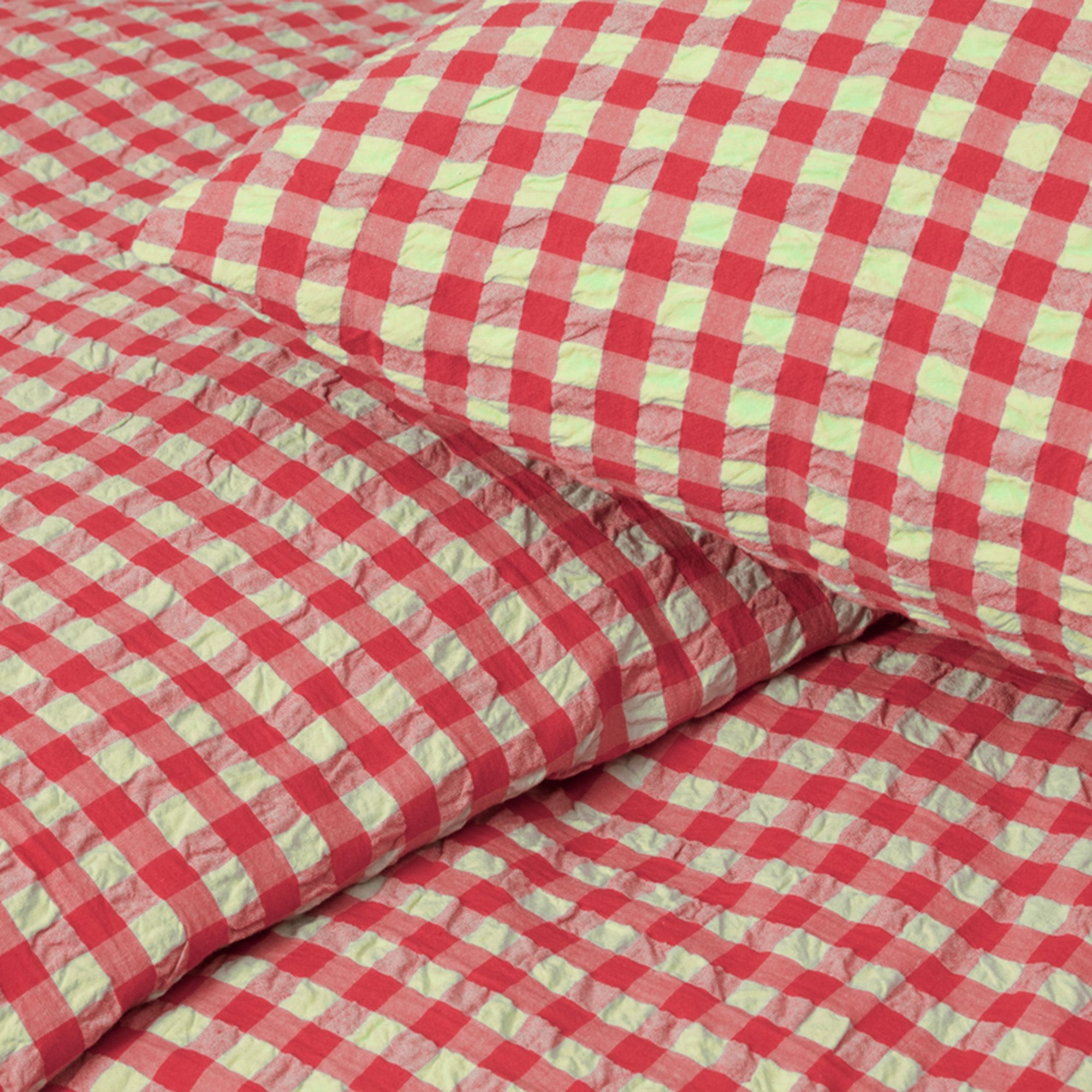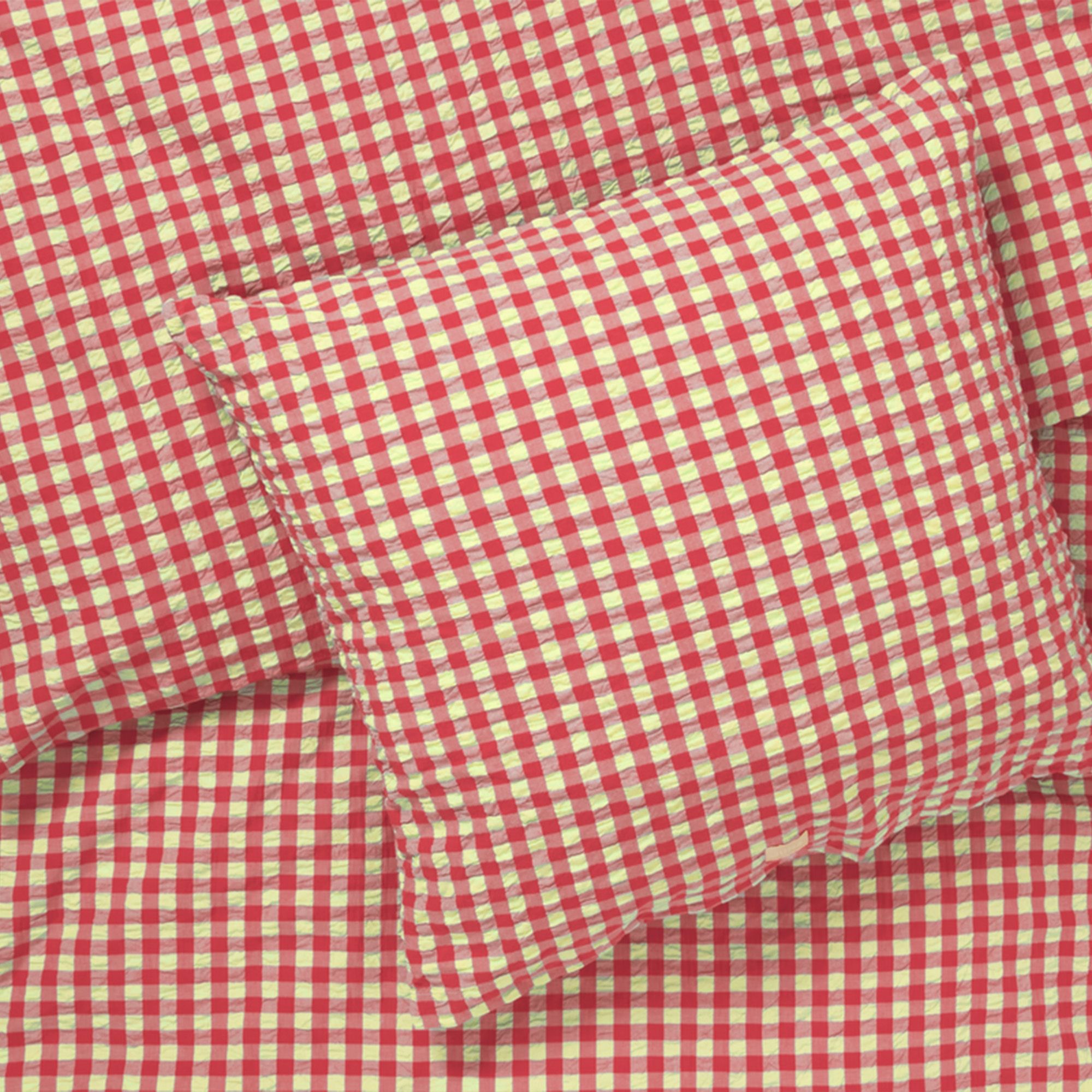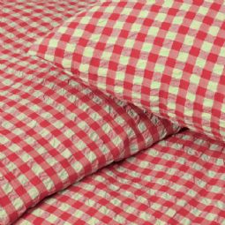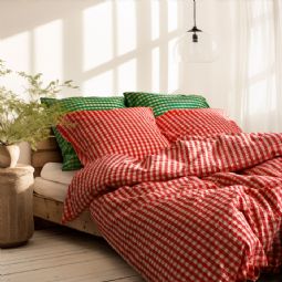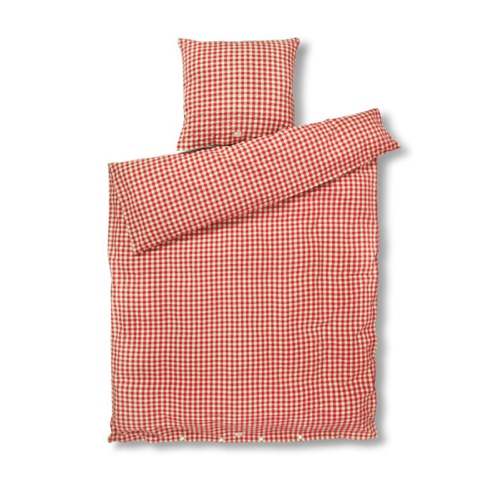 Det bløde bomuld kombineret med den krøllede struktur giver en unik følelse af luksus. Samtidig er sengetøjet praktisk i hverdagen, da det ikke kræver strygning og holder sit flotte udtryk vask efter vask. De fine tern i rød giver et roligt og stilrent look, der passer ind i både moderne og klassiske soveværelser.