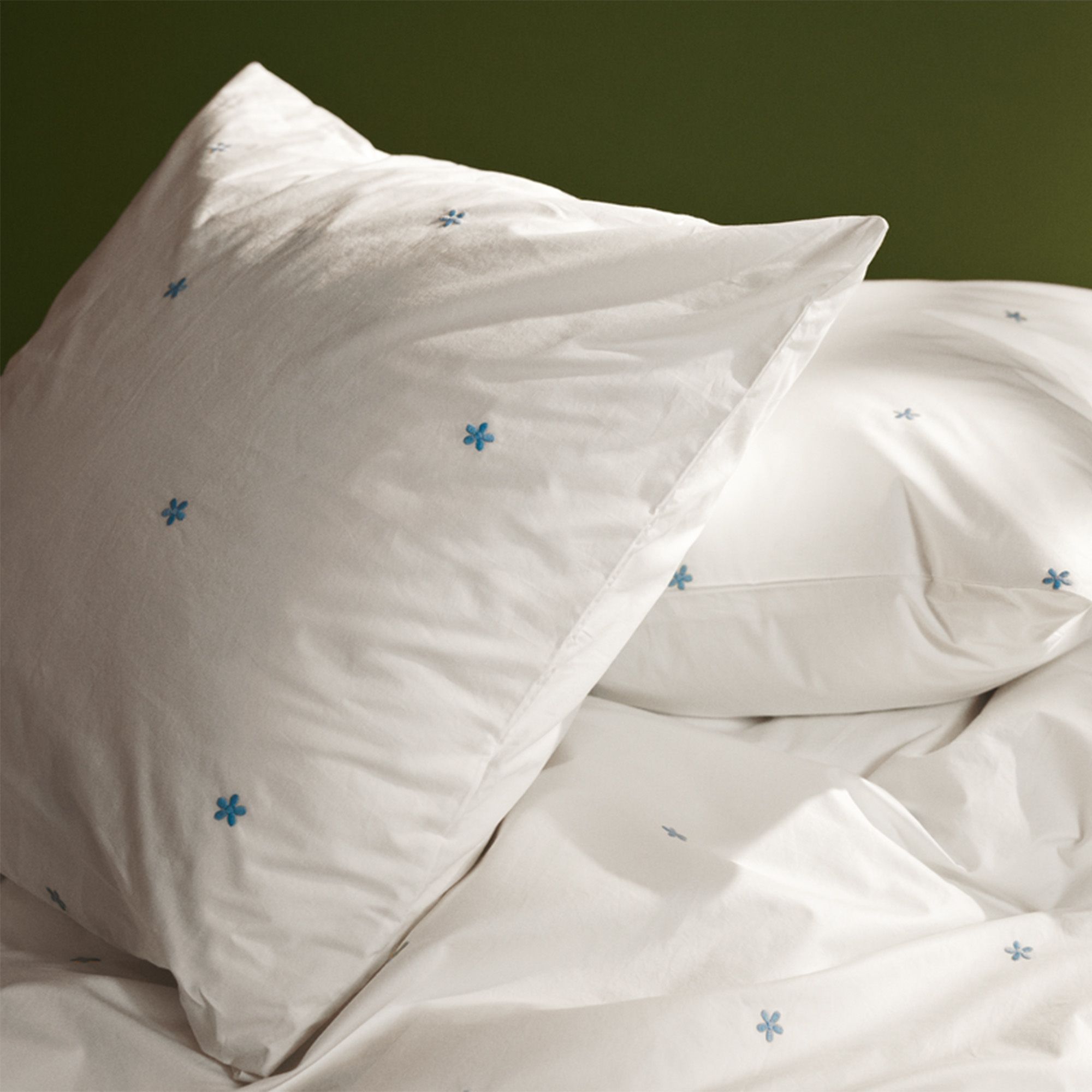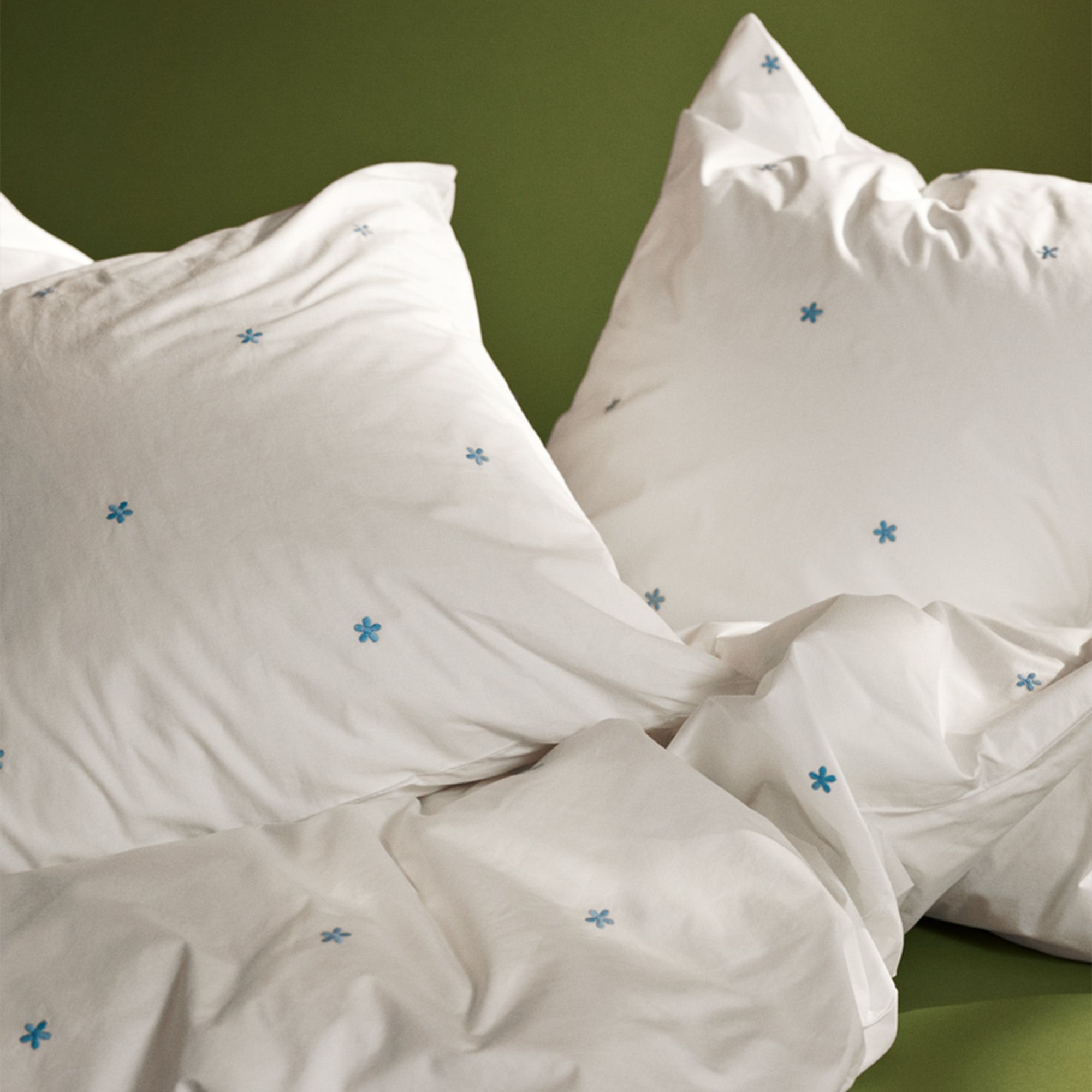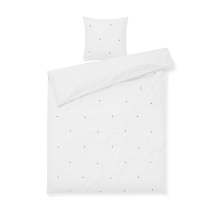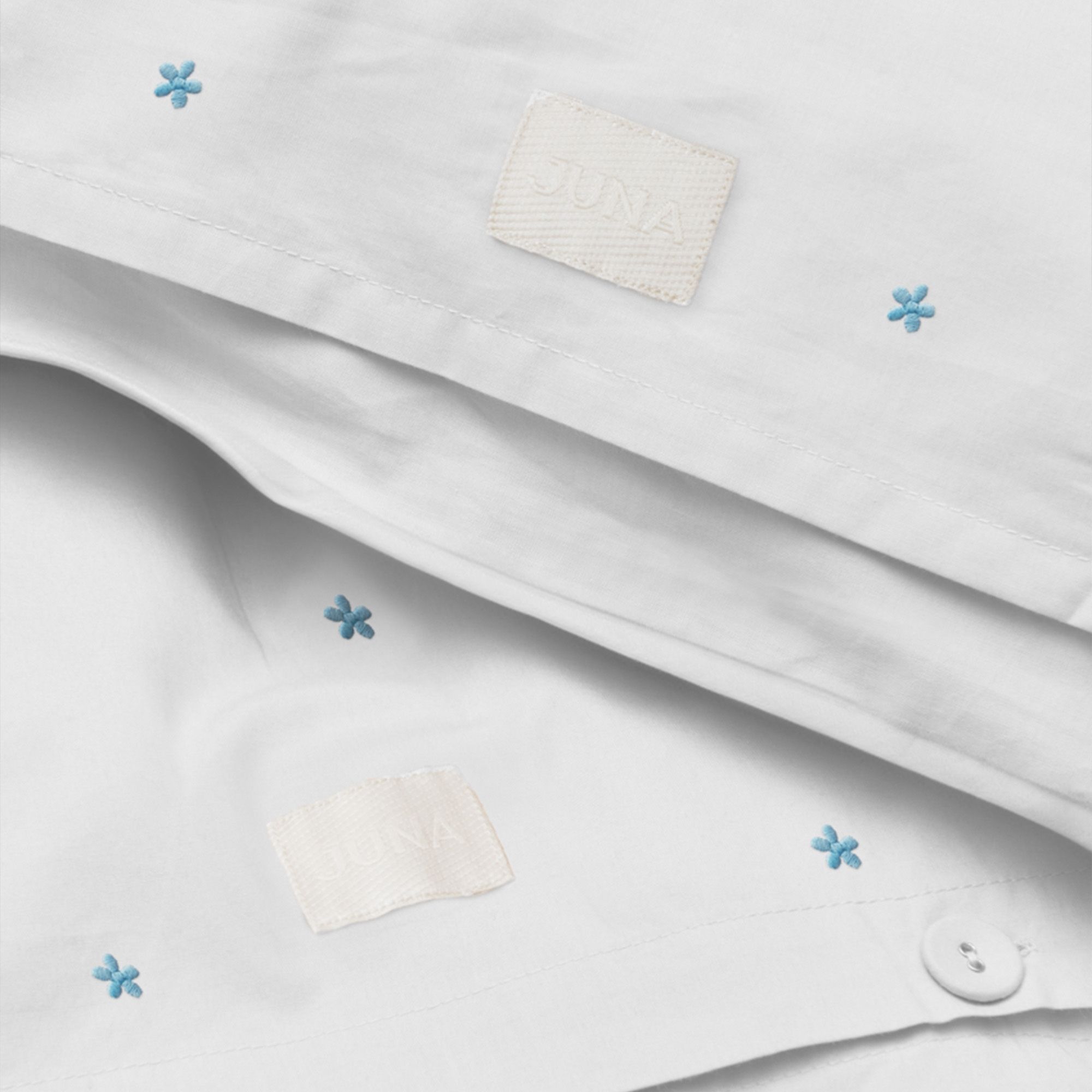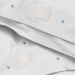 Daisy sengetøj med ekstra længde i økologisk bomuld - hvid med broderede blomster