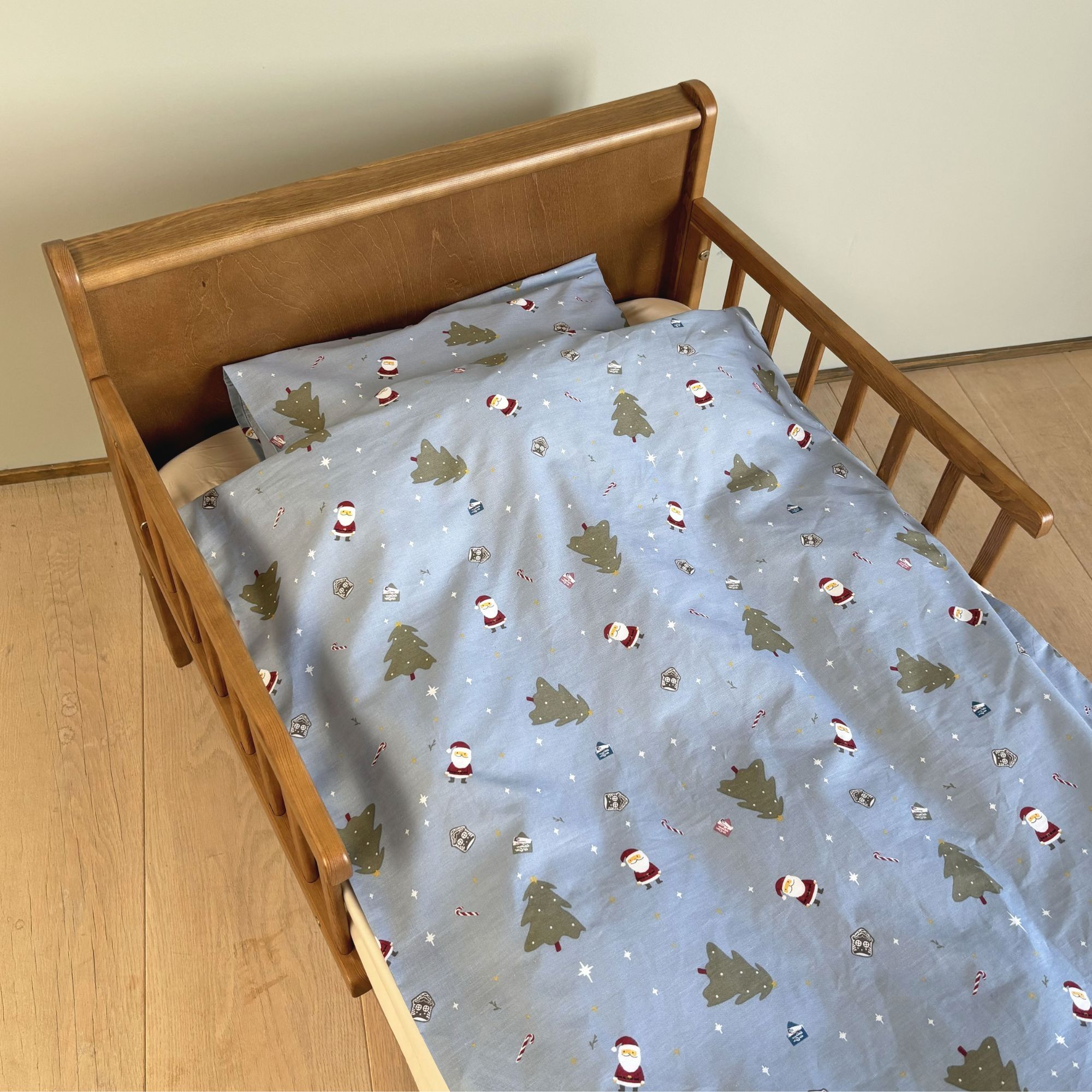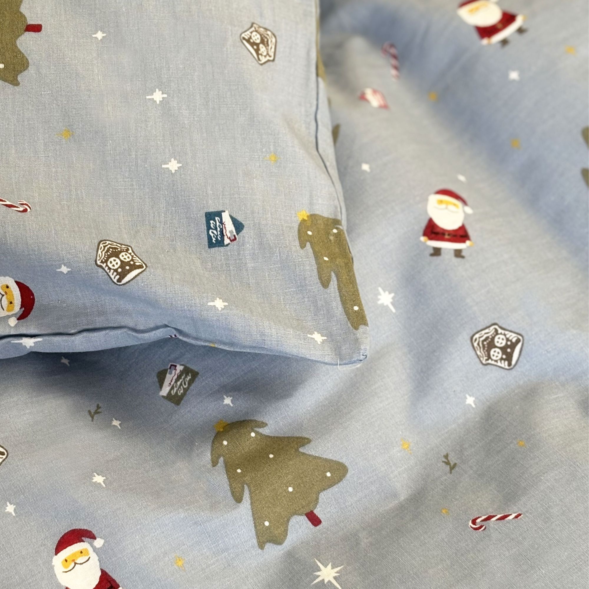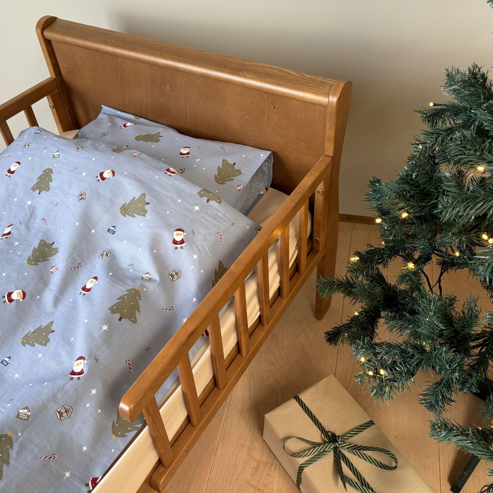 Blødt julesengetøj i 100% bomuld, med julemænd, juletræer og andre julemotiver. Produceret med lette og åndbare bomuldstråde som giver sengesættet en følelse af blødhed, der gør at dynen føles dejlig for dit barn at sove med. Balancen i naturlig egenskaber og komfort fra det bløde materiale, kombineret med det hyggelige juledesign, gør dette sæt til en sikker favorit hos dit barn.