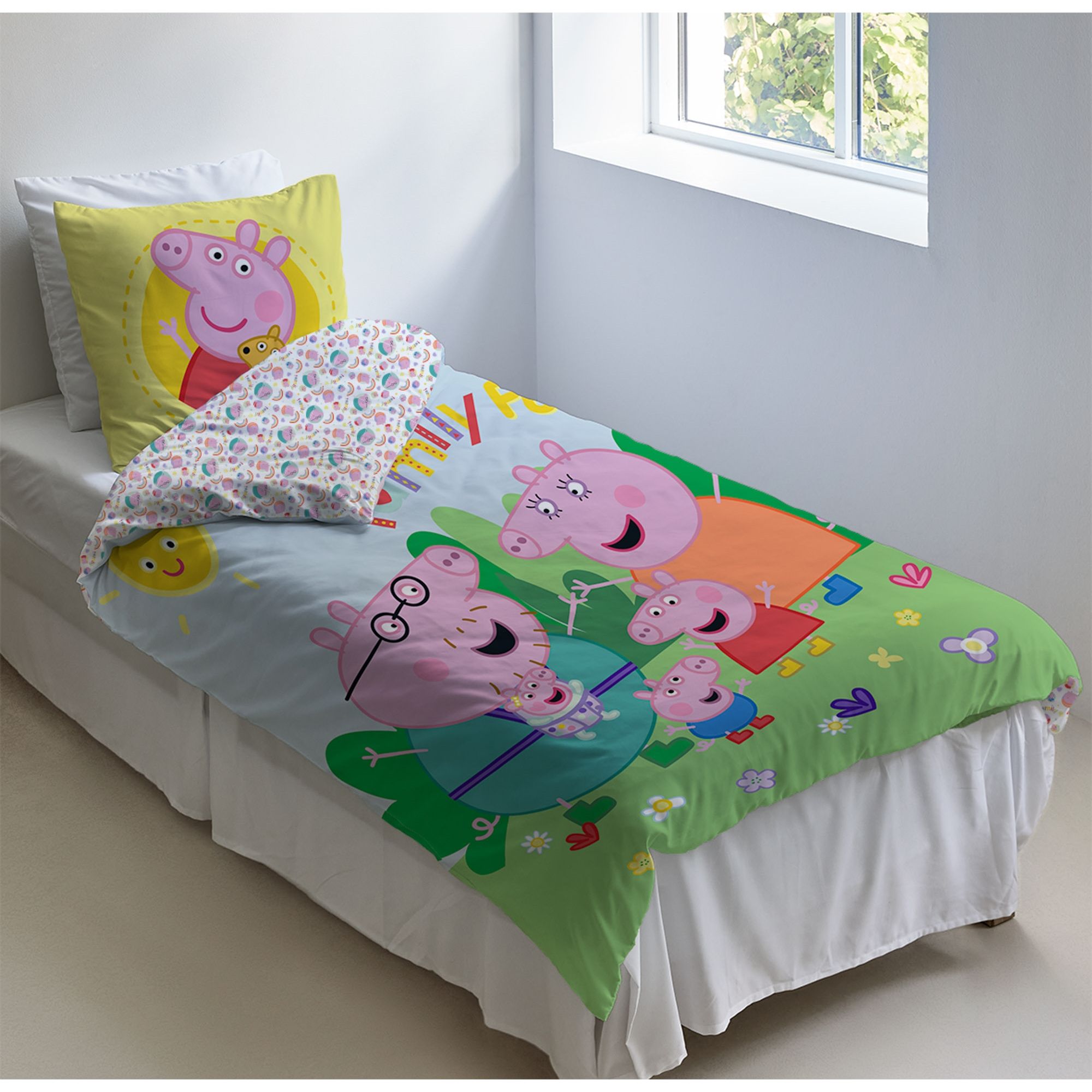 Junior sengetøj 100x140 cm - Vendbart sengesæt med Gurli Gris, Gustav Gris og Evie Gris - 100% bomulds sengelinned