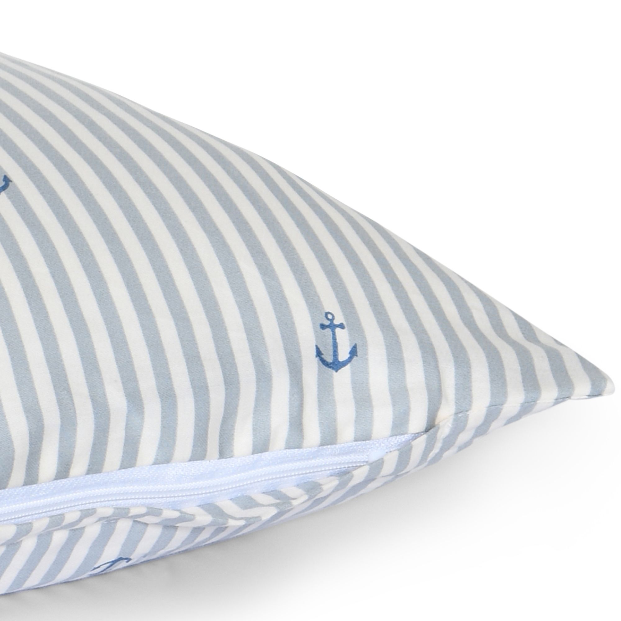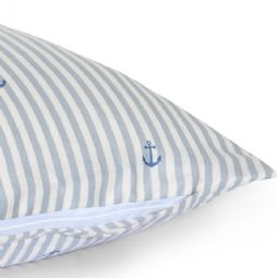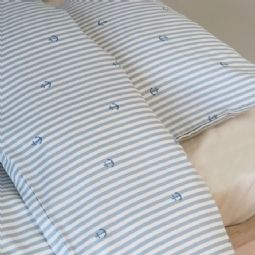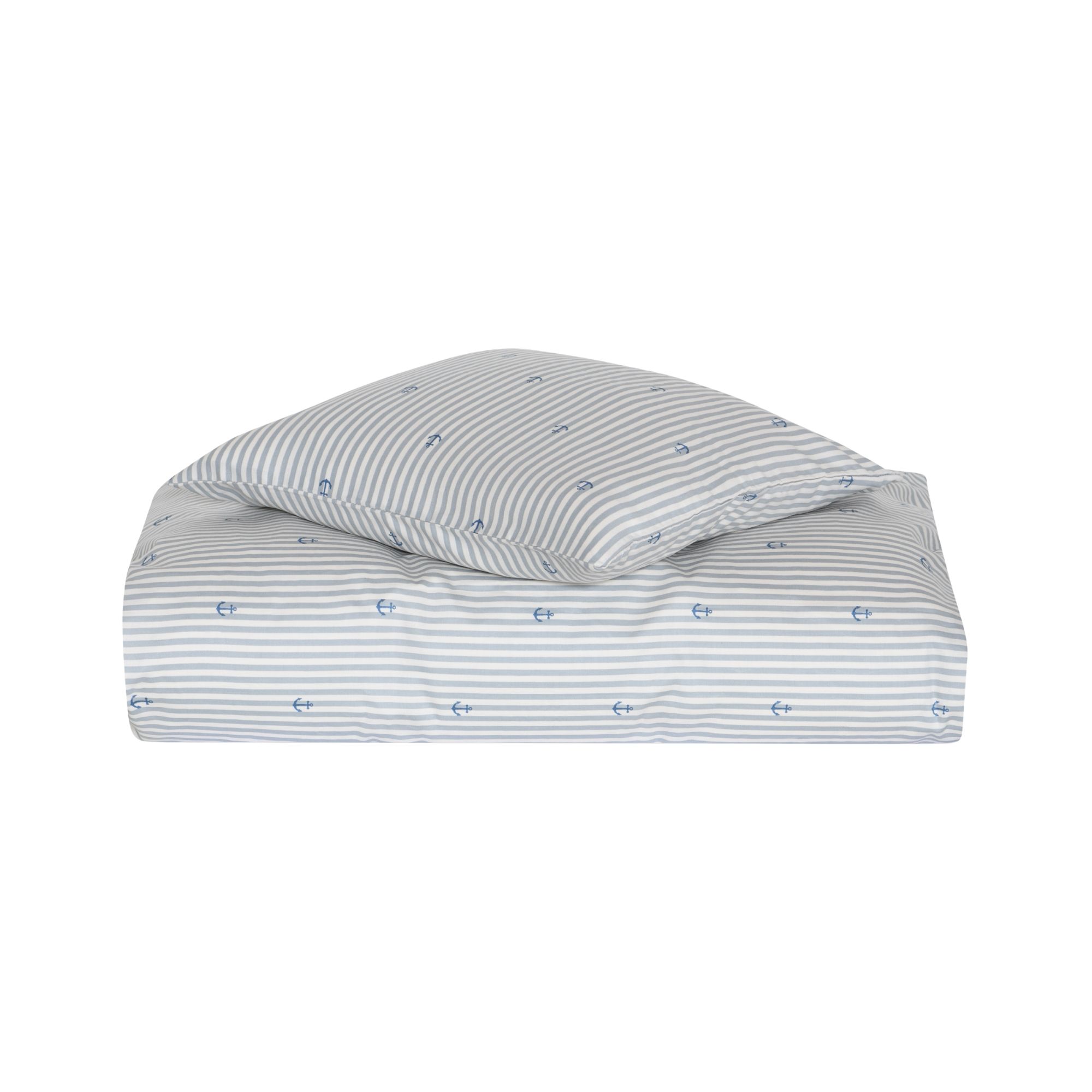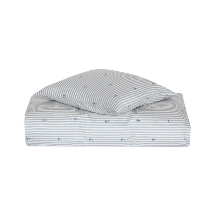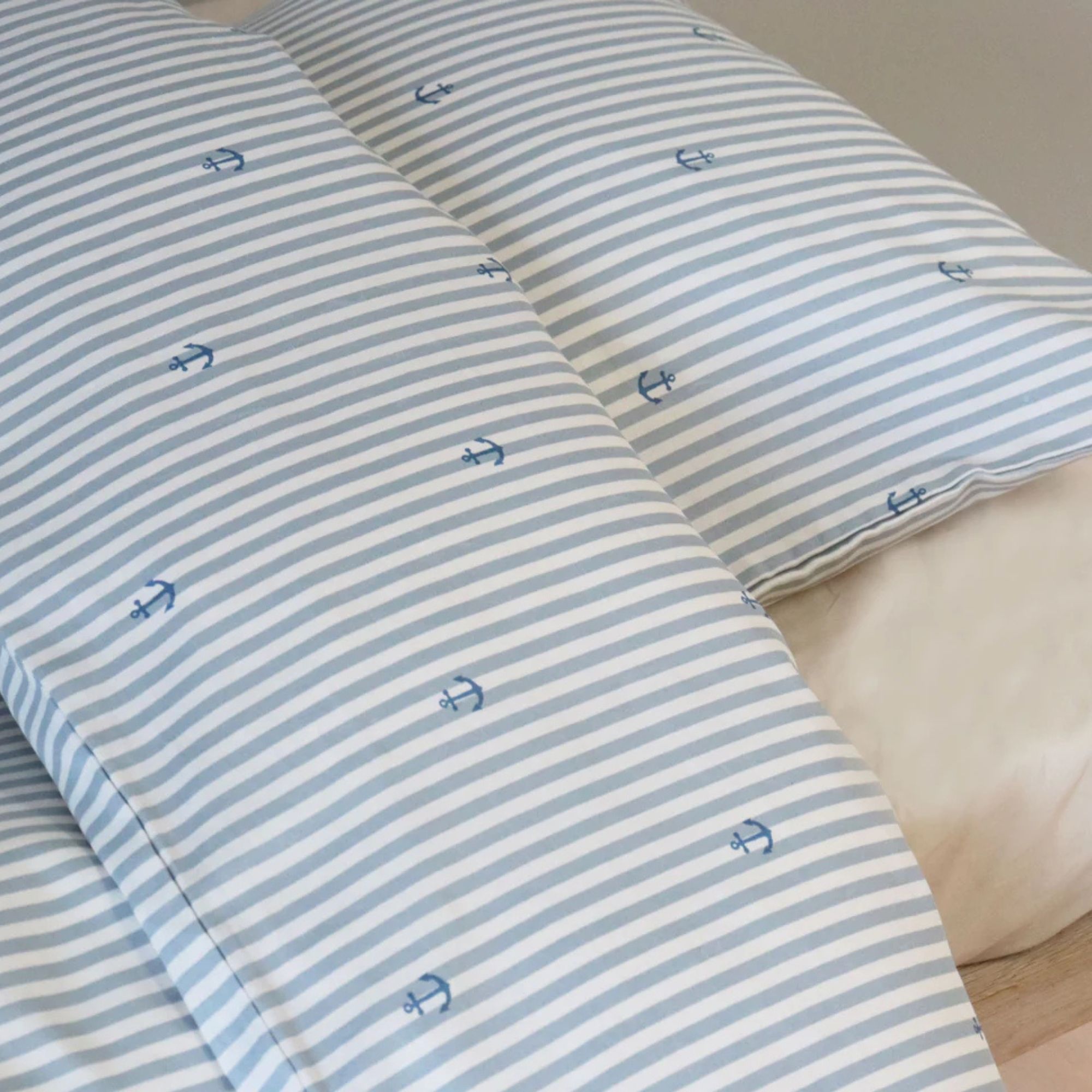 Dette fine junior sengesæt har et inspireret design med lyse striber og små blå anker. Kombinationen af de rolige farver og det enkle mønster giver sengesættet et friskt og hyggeligt udtryk, der passer perfekt til et lyst børneværelse.