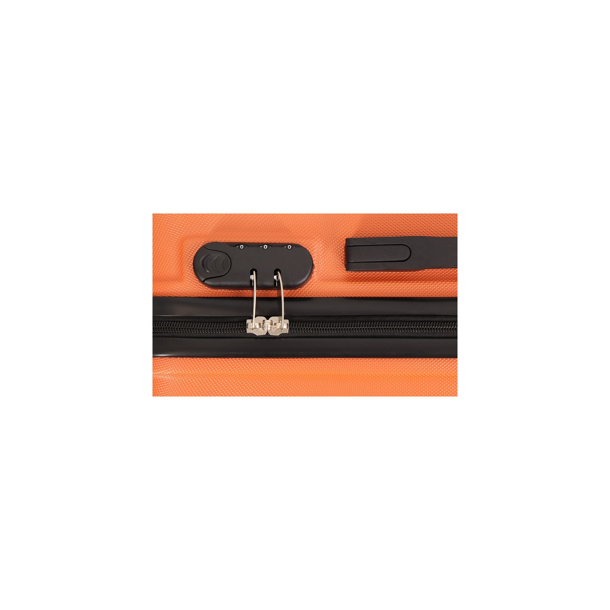 Denne rejsekuffert er din ideelle ledsager på alle dine rejser. Dens muslingen design og orange farve, giver den et eksklusivt udseende. Den er lavet af robust og slidstærkt letvægts ABS-plast. ABS plast har en god styrke, stivhed og modstand mod ridser. Dette materiale er ideelt til kufferter, da det kan modstå hårde slag og pres, der kan opstå under transport. Samtidig er det let, hvilket betyder at du kan pakke mere uden at bekymre dig om kuffertens vægt. Kufferten er designet med to separate rum. Det ene rum har justerbare krydsstropper til tøjet, så det ligger pænt i kufferten. Det andet rum kan lukkes med lynlås, hvilket sikrer, at du ikke har løse genstande, der rutsjer rundt oven på alt tøjet.