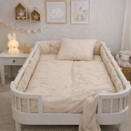 Sengetøjet er fremstillet i 100% blød bomuld, som er åndbart og behageligt mod barnets hud. Bomuldens naturlige egenskaber hjælper med at regulere temperaturen, så dit barn får en komfortabel og rolig nattesøvn.