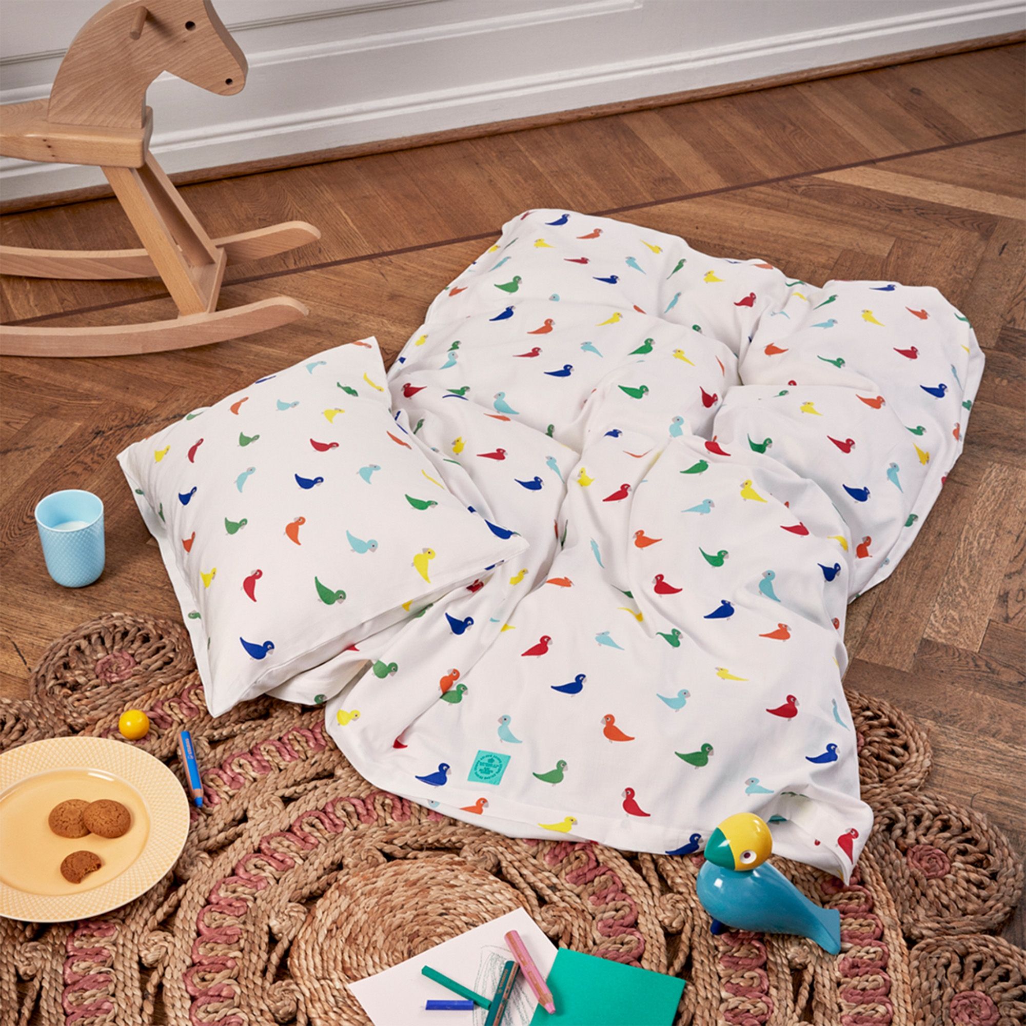 Kay Bojesen baby sengetøj - økologisk sengesæt med farverige sangfugle