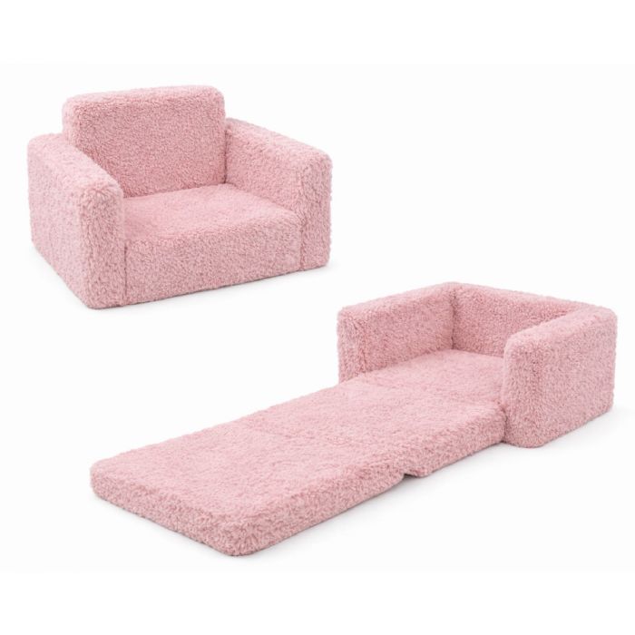 Børnefoldestol | 2-i-1 foldbar stol til børn med blødt plys betræk