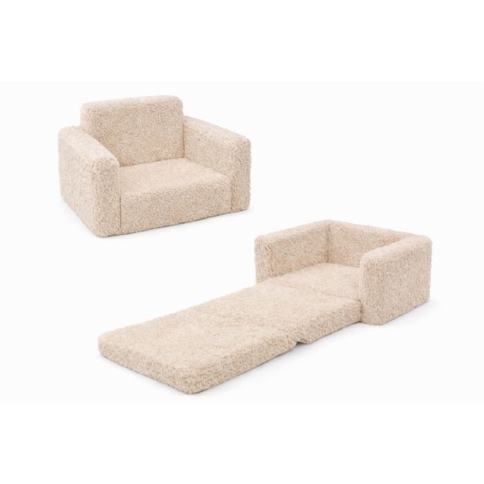Denne utrolig bløde foldestol til børn er designet med fokus på komfort, samt at opnå flere funktioner i et produkt. Når stolen er sammenfoldet, fungerer den som en hyggelig lille lænestol i børnehøjde. Når den foldes ud, bliver den til en mini-madras, som kan bruges til leg, afslapning eller overnattende legekammerater. Det gør den til et oplagt valg til både børneværelset og stuen.