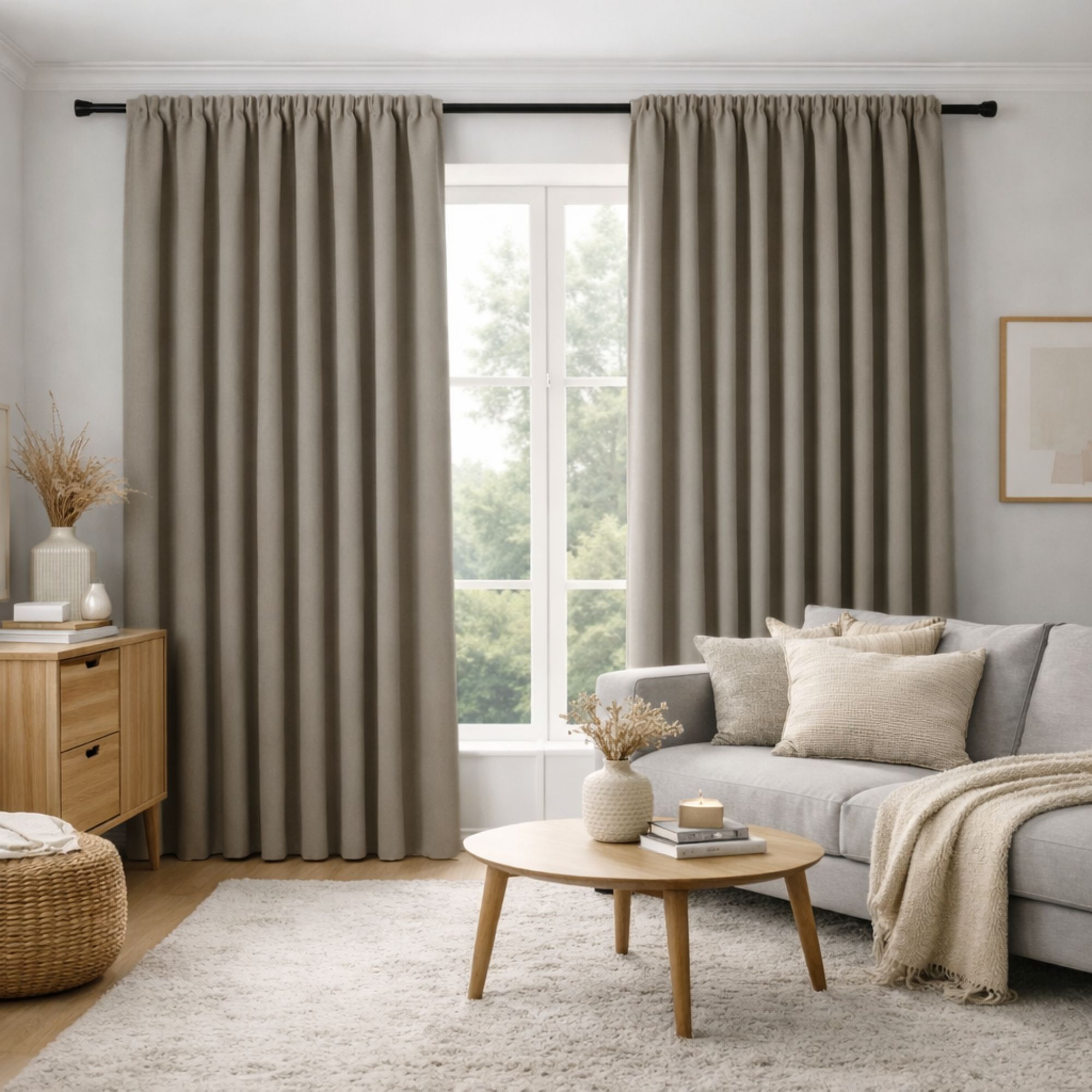 Langt mørklægningsgardin - 1 stk. færdigsyet gardin 140x245 cm - Beige - Nordstrand Home blackout gardinlængder med rynkebånd