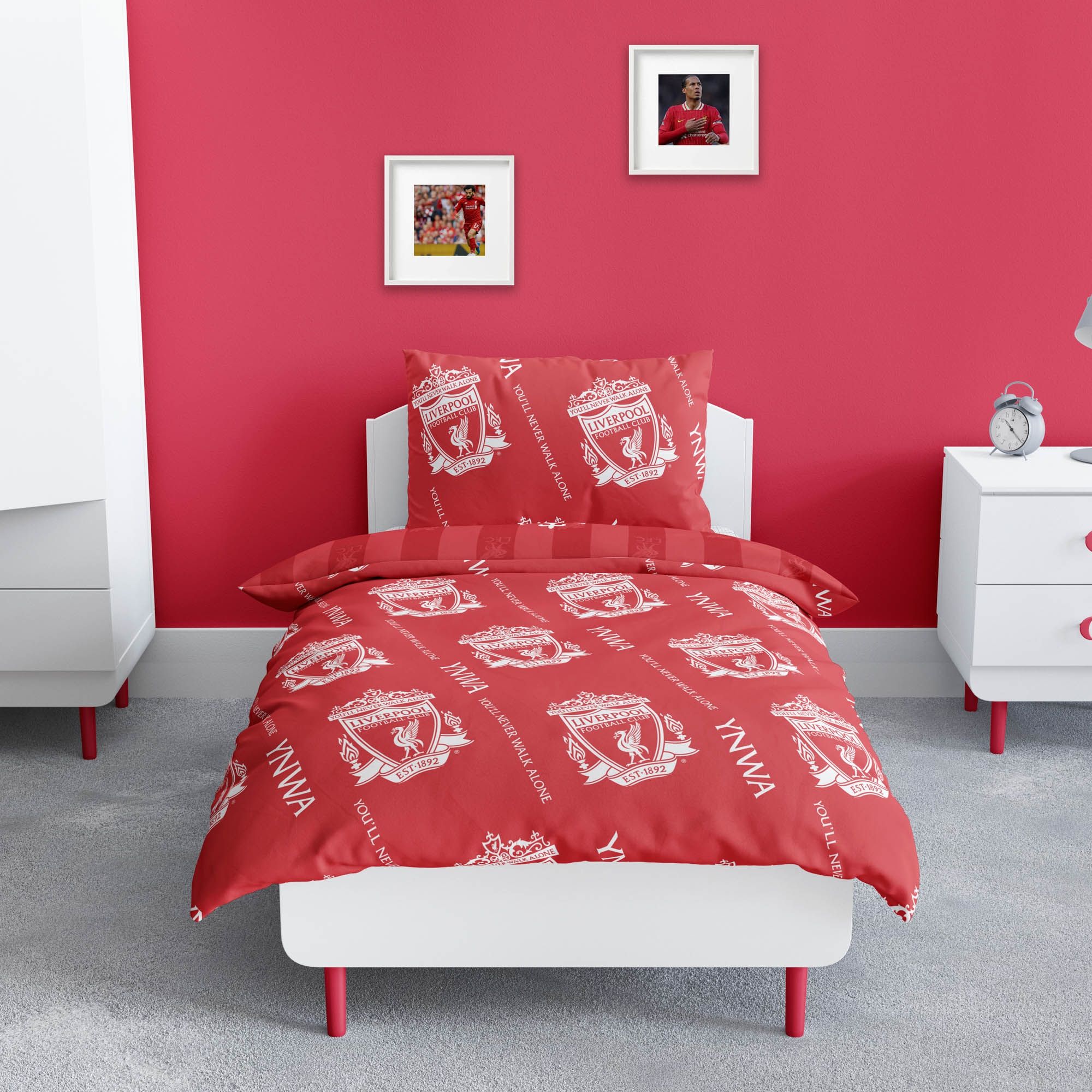 Blødt sengetøj i 100% bomuld, med design af Liverpool logoet. Perfekt til den lille fodboldfan, der elsker at spille. Produceret med lette og åndbare bomuldsfibre giver det sengesættet en følelse af blødhed, der gør at dynen vil falde natuligt rundt om dit barn. Balancen i naturlig komfort fra det bløde materiale og det hyggelige fodbold design, gør dette sæt til en sikker favorit hos dit barn.