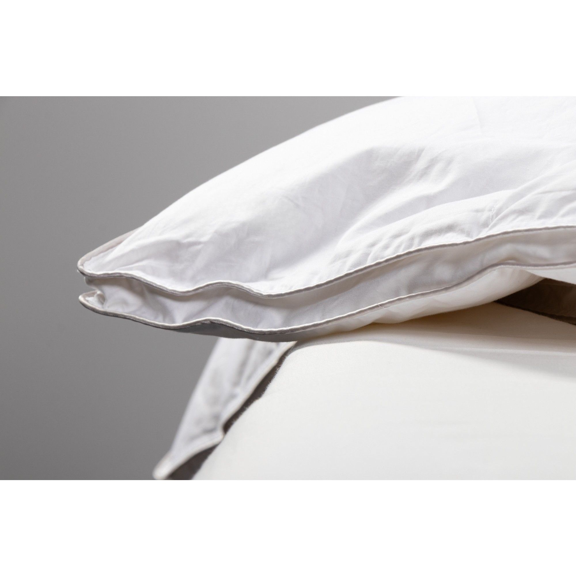 Moskusdynen er produceret med et flot hvidt bolster (vår) i 100% duntæt og meget fin bomuldssatin, samt en fin grå piping kant, alt dette giver ikke kun dynen sit elegante udtryk og ekstra bløde følelse. Denne sammensætning af bolster gør også at støvmider ikke kan trænge igennem, hvilket gør at dynen også et velegnet til allergikere.