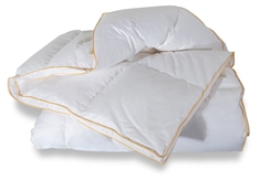 Dynen er syet i 5x7 kassetter, så dunene fordeler sig jævnt i dynen og isolerer uden kuldebroer. Dynen er syet med 3 cm. panel kant, således at dunene isolerer helt ud til dynens kant, dette optimerer udnyttelsen af varmen fra de eksklusive gåsedun. Bolstret er af 100% blødt og lækkert bomuldssatin, som er så tætvævet at husstøvmider ikke kan trænge igennem.