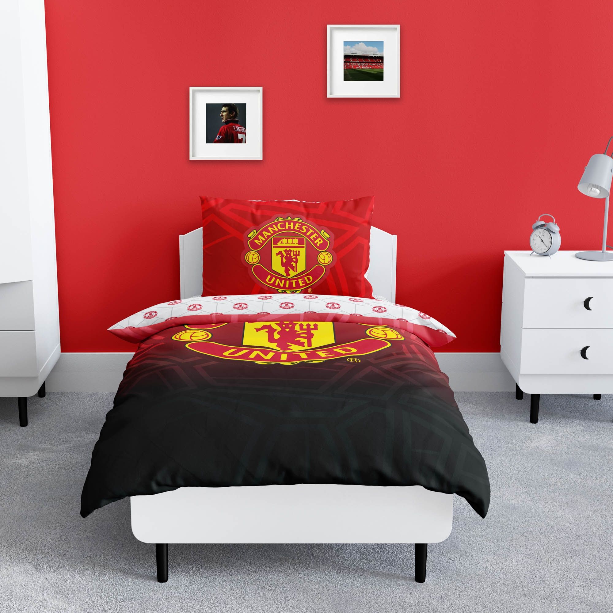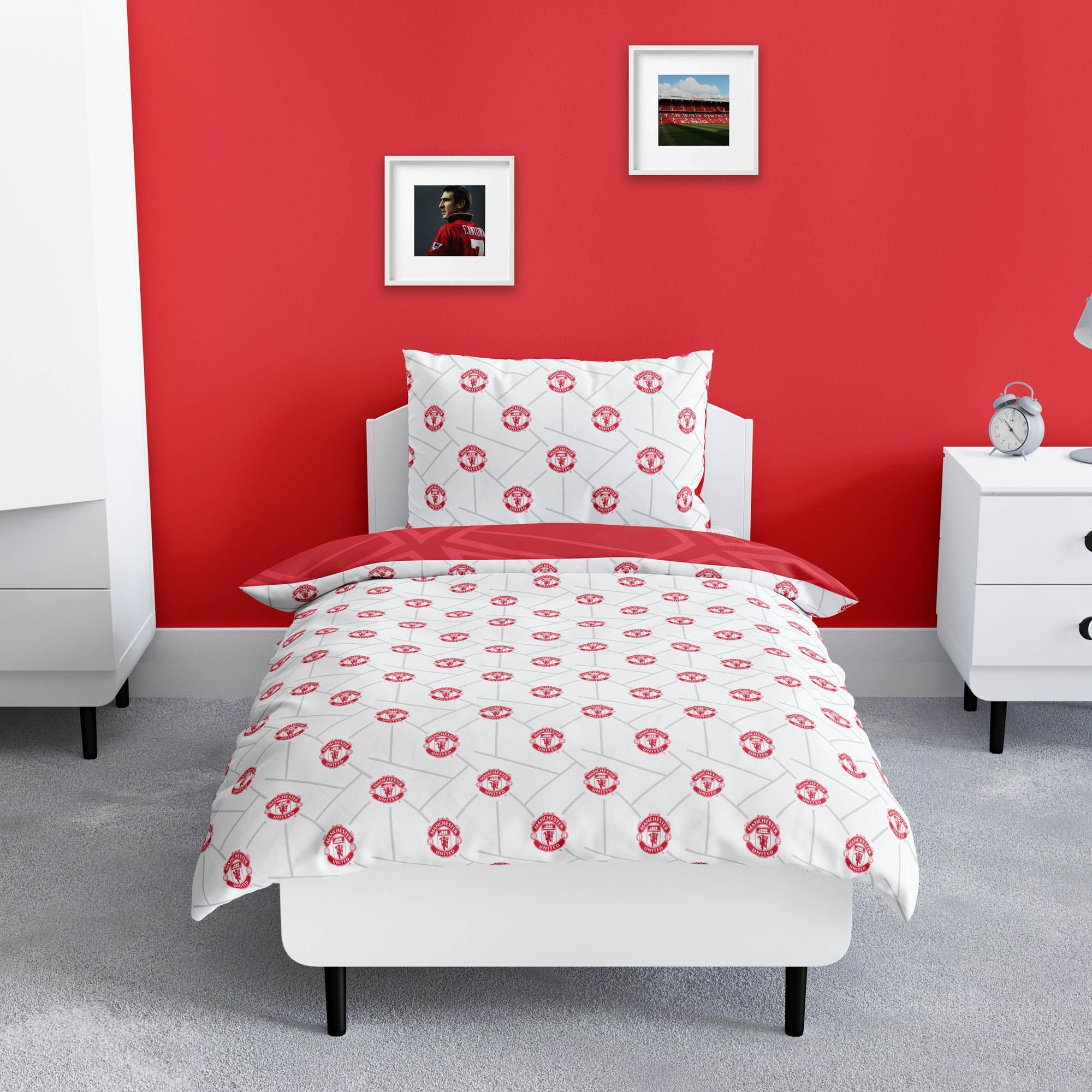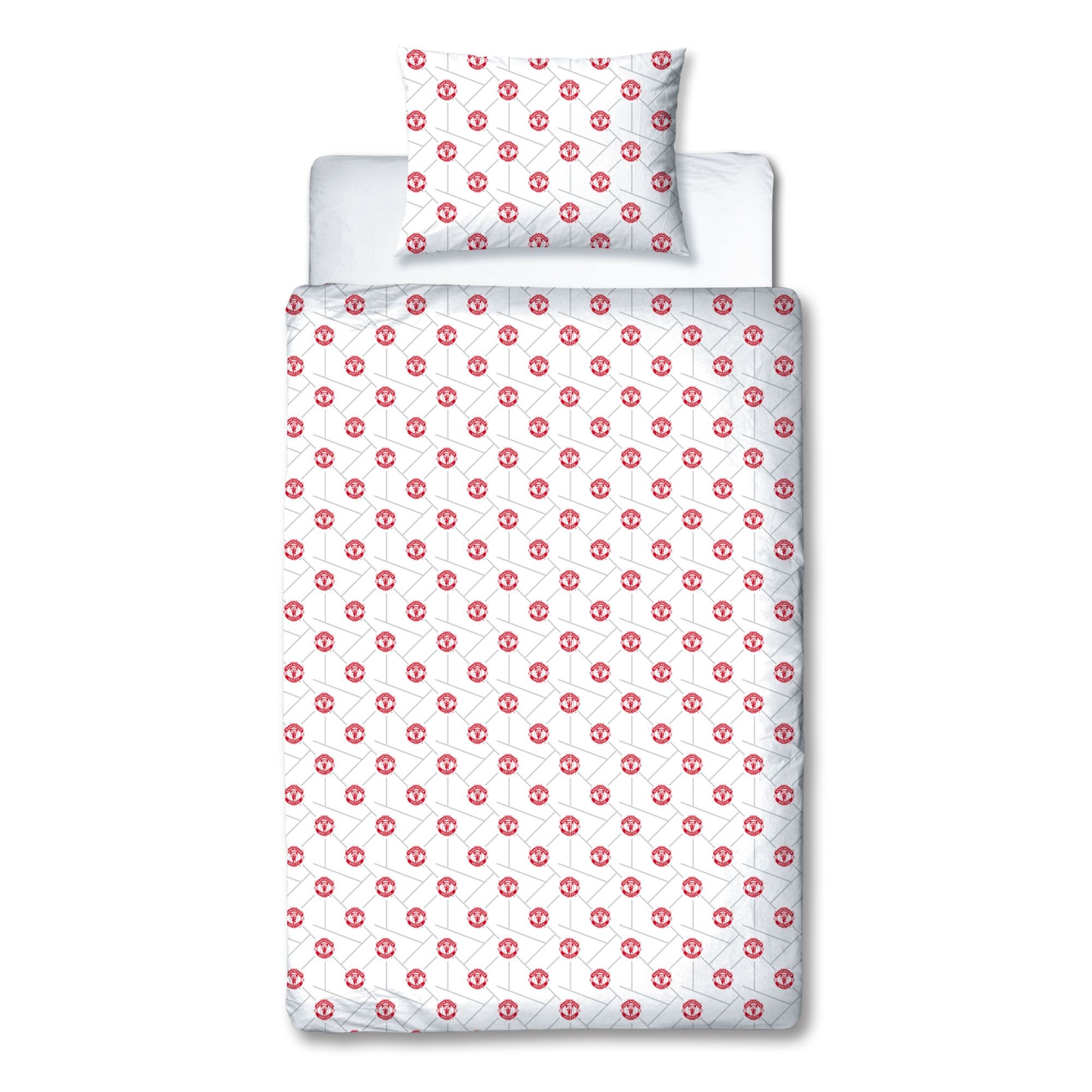 Blødt sengetøj i 100% bomuld, med design af Manchester United logoet. Perfekt til den lille fodboldfan, der elsker at spille. Produceret med lette og åndbare bomuldsfibre giver det sengesættet en følelse af blødhed, der gør at dynen vil falde natuligt rundt om dit barn. Balancen i naturlig komfort fra det bløde materiale og det hyggelige fodbold design, gør dette sæt til en sikker favorit hos dit barn.