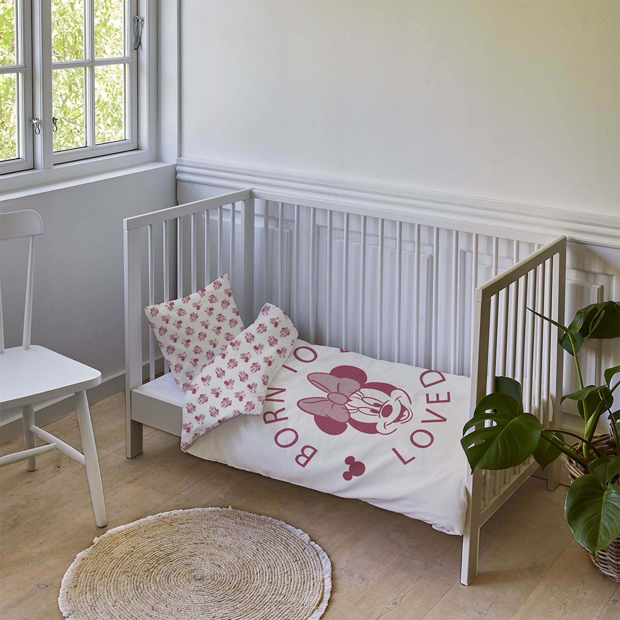 Gør sengetid ekstra hyggelig med dette Minnie Mouse junior sengetøj. Sengesættet er i 100% blødt bomuld, hvilke sikrer en god komfort hele natten. Materialet er åndbart, slidstærkt og holder farverne flotte - selv efter mange vaske. Sengetøjet er perfekt til børn, der elsker Minnie Mouse med hendes fine sløjfe og charmerende smil. Sengetøjet er i en flot farve med et skønt motiv af Minnie og teksten Born To Be Loved på forsiden. På bagsiden er der et overall print af små motiver af Minnie Mouse. Sengesættet er OEKO-TEX® certificeret og testet fri for skadelige stoffer, så dit barn trygt kan sove med det hver nat.