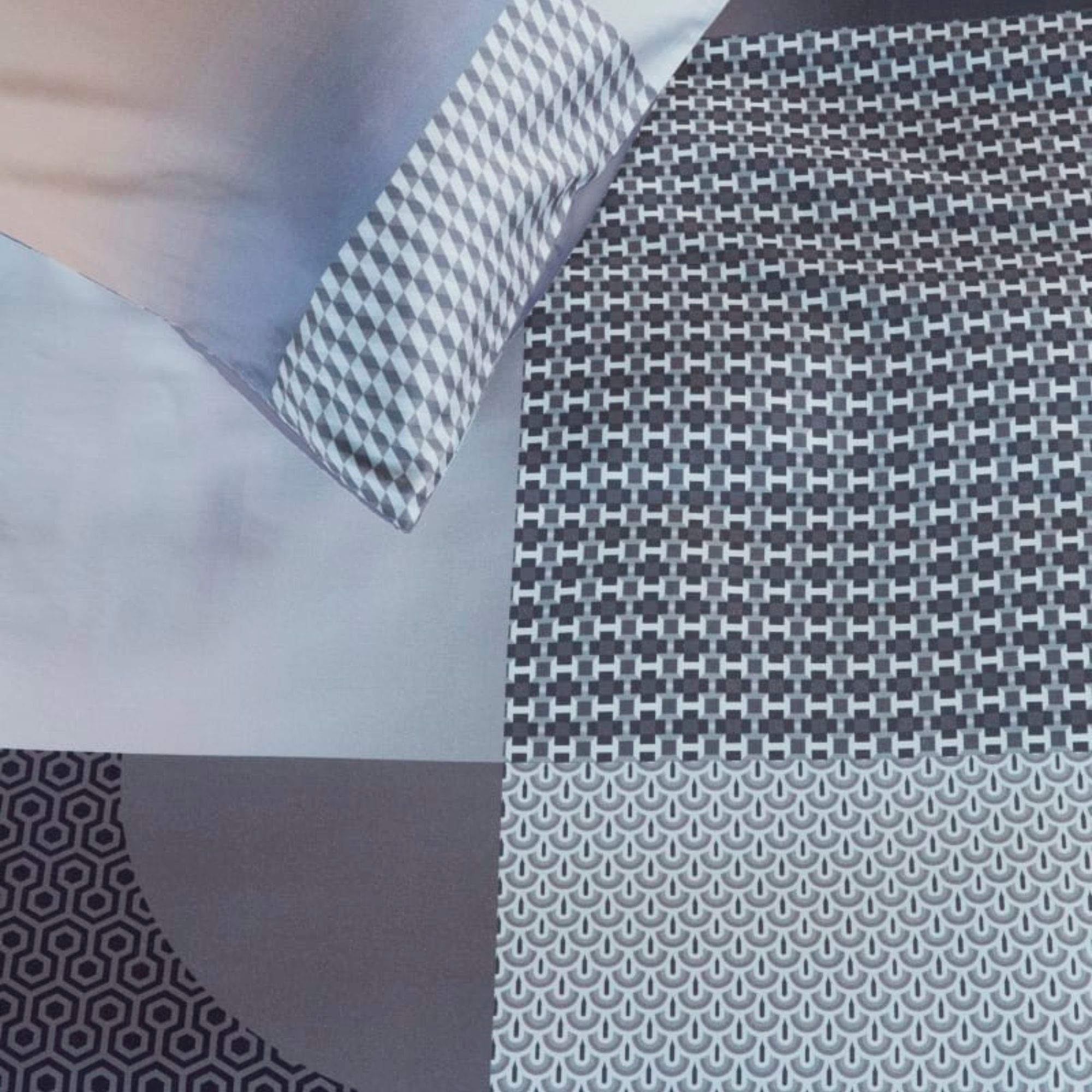 Mønstret økologisk sengetøj 140x200 cm - Vendbart sengesæt i 100% økologisk bomuldssatin - Robbinson Grey - Beddinghouse sengelinned