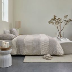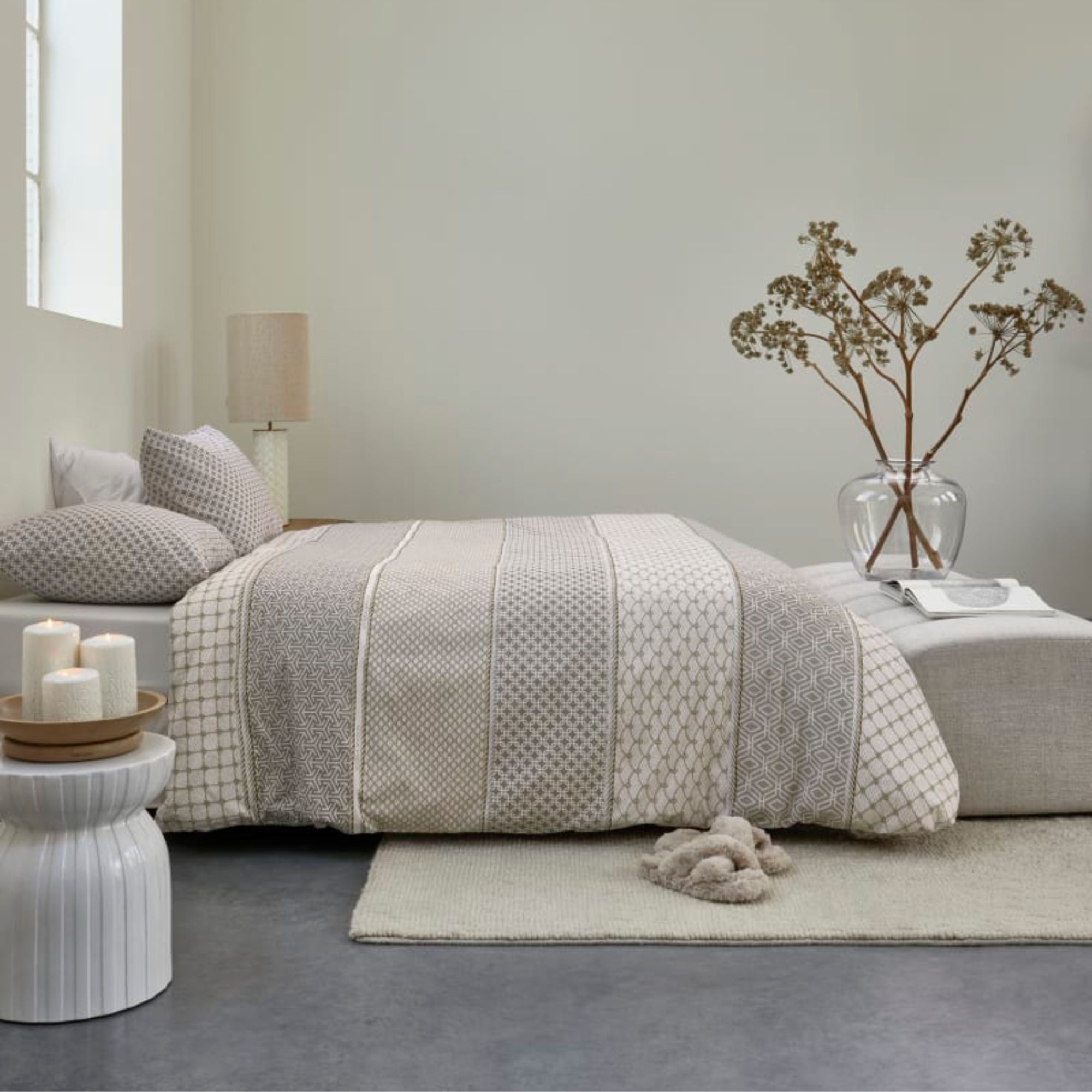 Mønstret sengetøj 140x200 cm - Sengesæt i 100% blød bomuld - Ropes Taupe - Riviéra Maison sengelinned