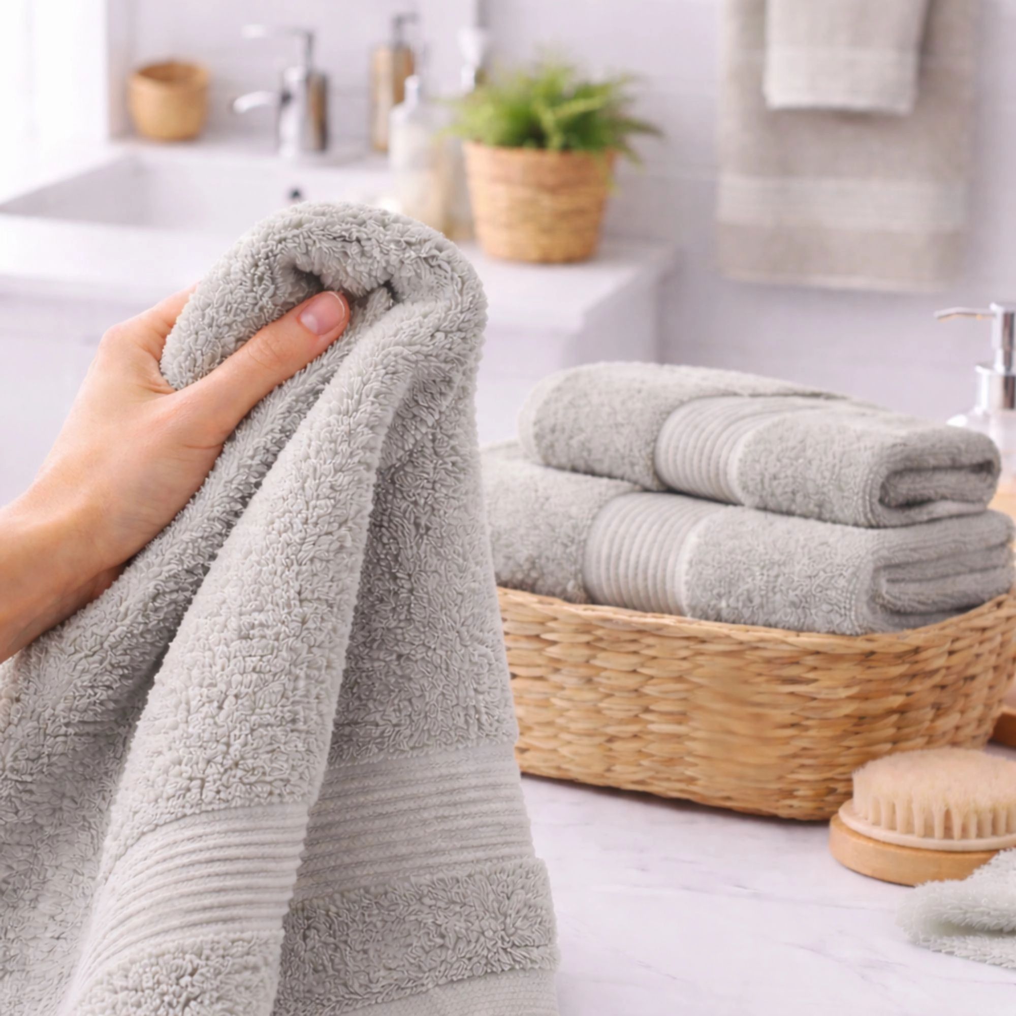 Vi anbefaler altid, at helt nye håndklæder lægges i blød i koldt vand før første vask - således forbedre du håndklædernes absorberingsevne. Derudover kan håndklæderne med fordel tørretumbles for at bevare deres fylde og blødhed.