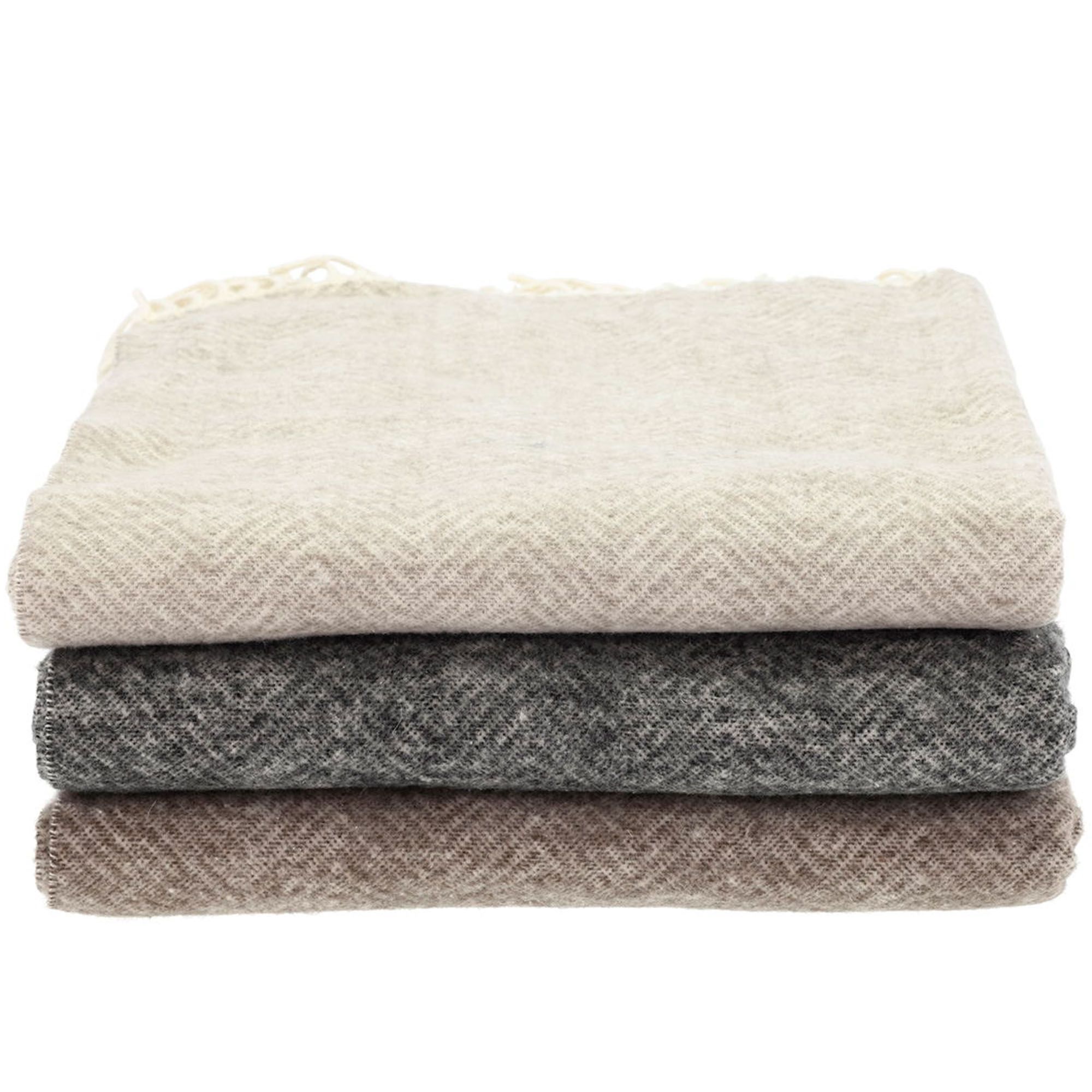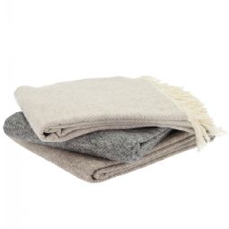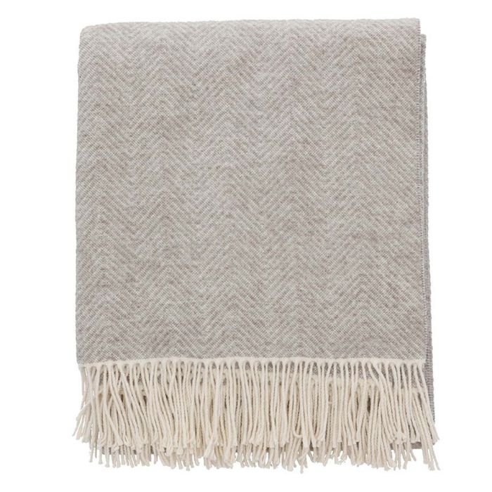 Den rolige beige farve og det elegante sildebensmønster skaber en hyggelig atmosfære og gør plaiden nem at kombinere med øvrige tekstiler i hjemmet.