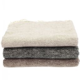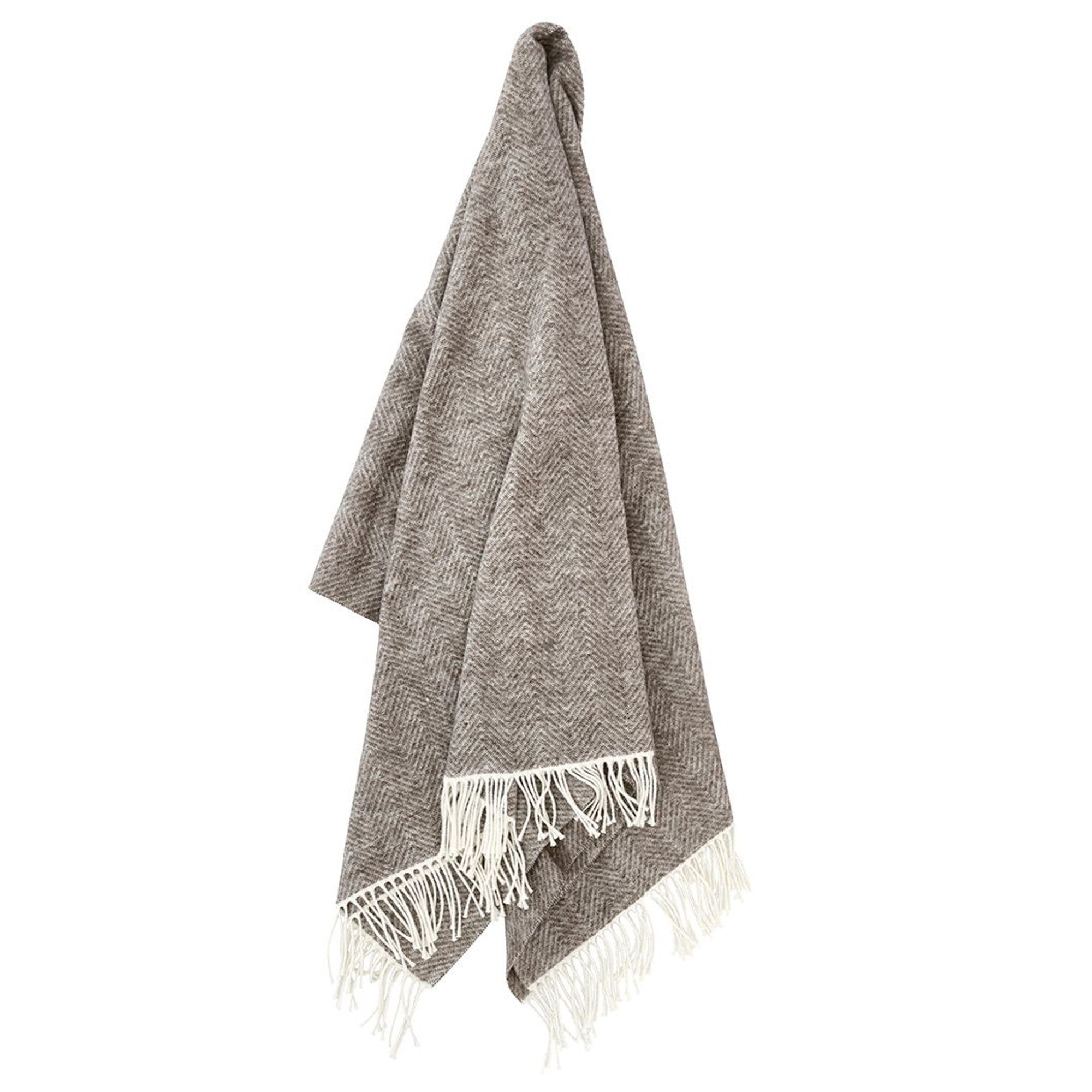 Den rolige beige farve og det elegante sildebensmønster skaber en hyggelig atmosfære og gør plaiden nem at kombinere med øvrige tekstiler i hjemmet.