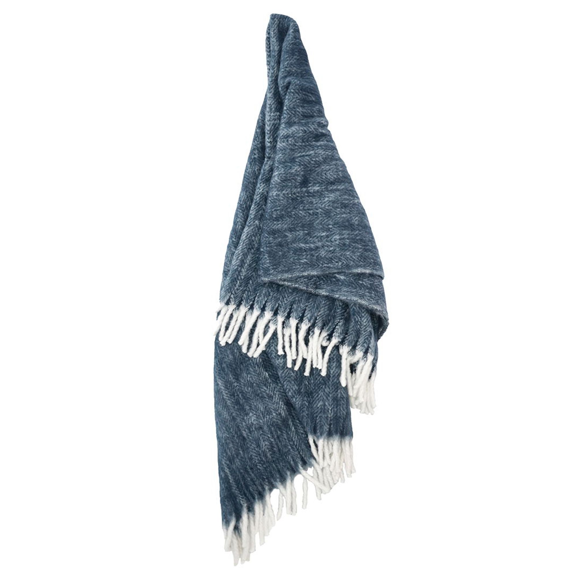 Plaiden er fremstillet i 100% akryl med en luksuriøs børstet overflade, der giver en utrolig blød og behagelig følelse mod huden. Dette materiale minder utrolig meget og det børstet look fra Mohair tråde. Det klassiske sildebensmønster kombineret med den dybe blå farve skaber et tidløst og elegant udtryk i din boligindretning.