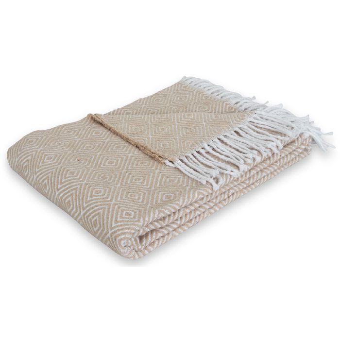 Plaid tæppe i blødt bomuld - 130x200 cm - Blød bomuldsplaid med grafisk mønster i mocca fra Nordstrand Home