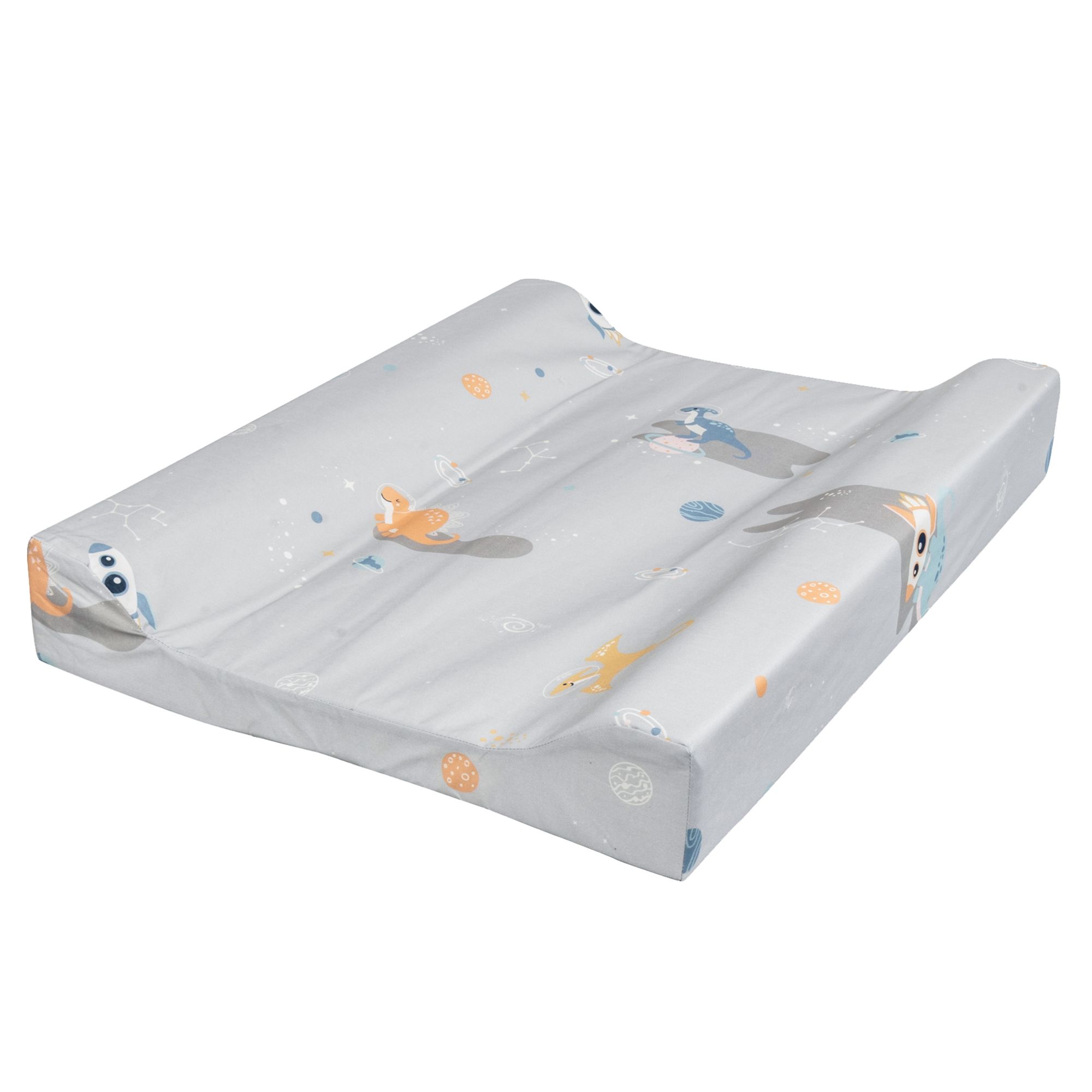 En puslehynde med kombination af smart og sødt design. De høje kanter gør det vanskeligere for barnet at trille, når du ligger det fra dig på puslebordet, dette skaber en større tryghed ved bleskift. Pusleunderlagets størrelse passer til alle almindelige pusleborde, hjemmelavet puslestationer med kommode samt væghængte pusleborde. Denne puslepude er produceret af sammenpresset skum, betrukket med et blødt bomuldsbetræk som er PU-coated, sådan at den er vandafvisende. Du kan derfor blot bruge en fugtig klud til at aftørre puslepuden, hvis der skulle ske uheld eller den behøver at blive rengjort.