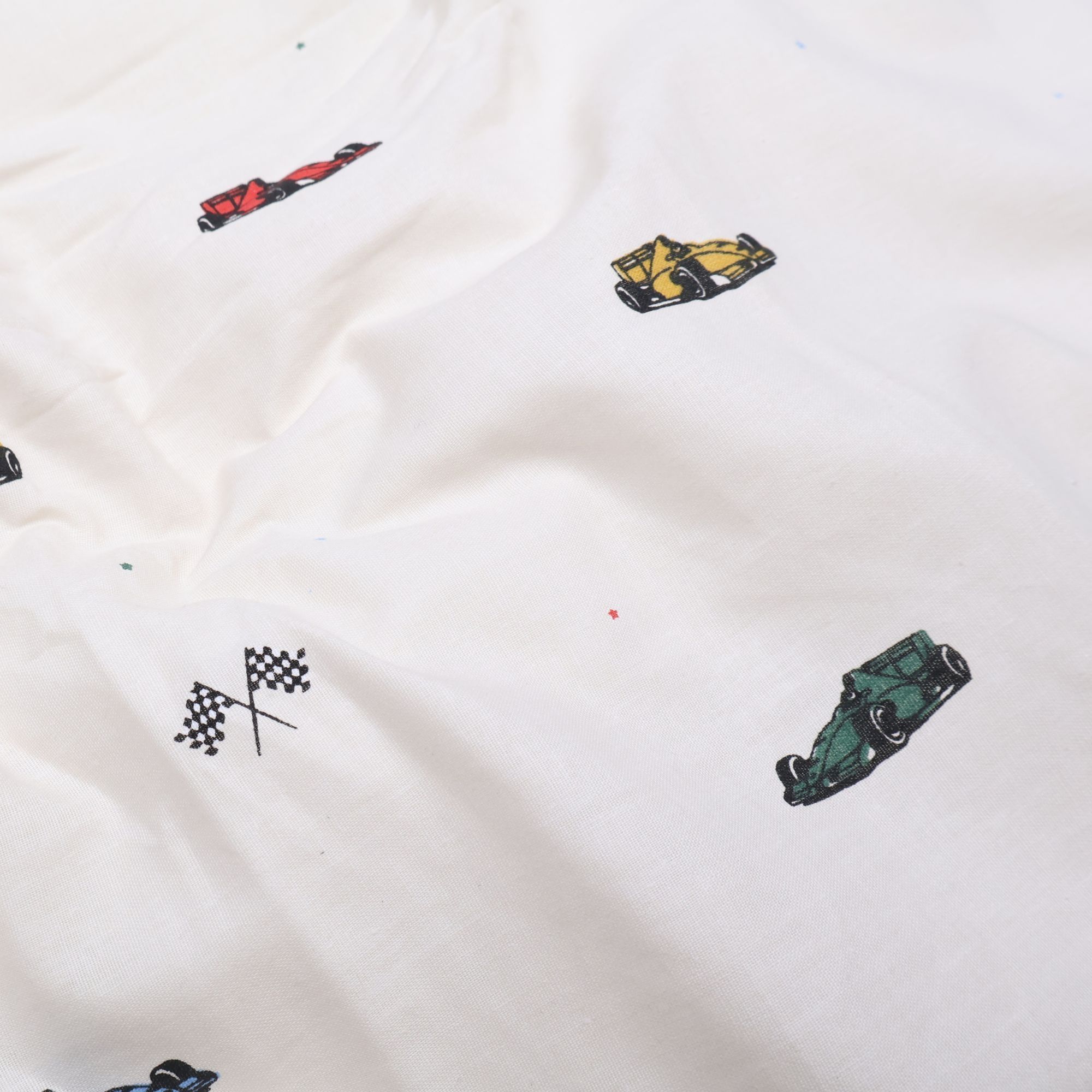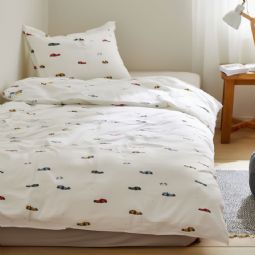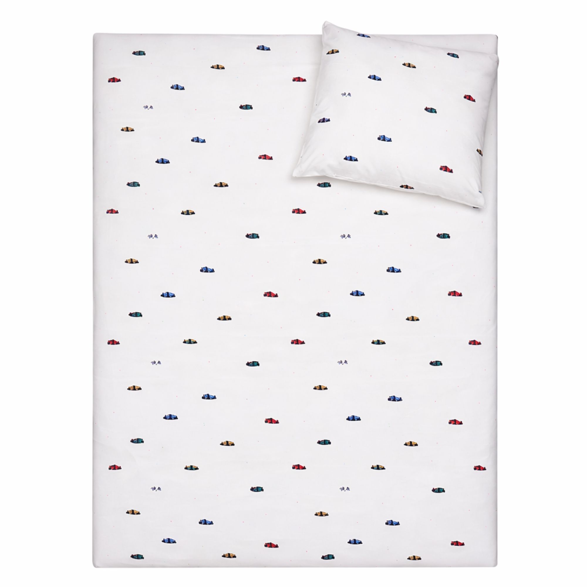 By Mats junior sengetøj 100x140 cm - hvid med racerbiler