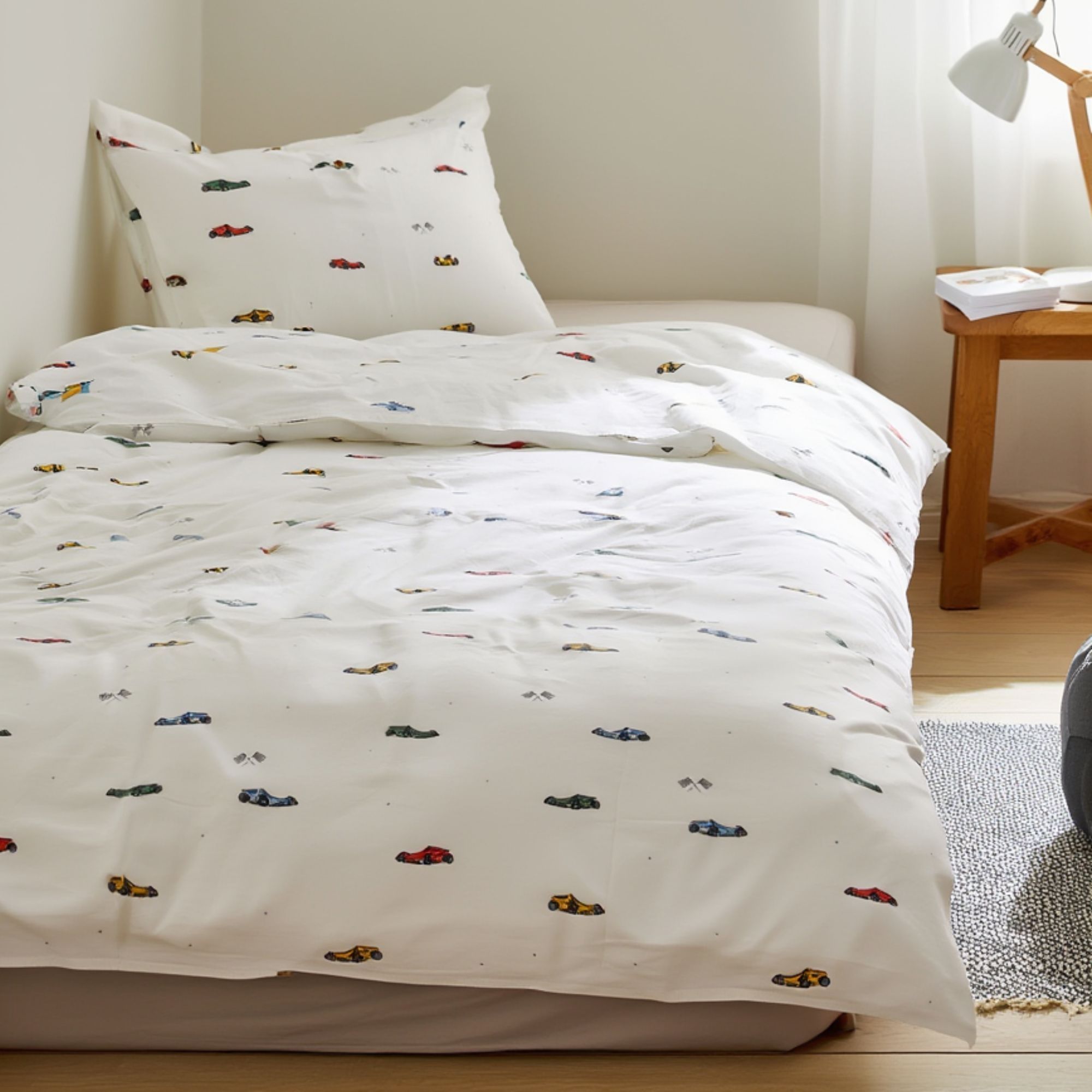 Skab en lys og rolig stemning på børneværelset med dette fine junior sengetøj fra By Mats i en hvid nuance med små, dekorative racerbiler. Det enkle og nordiske design giver et blødt og harmonisk udtryk, som passer smukt ind i både moderne og klassiske indretninger.
