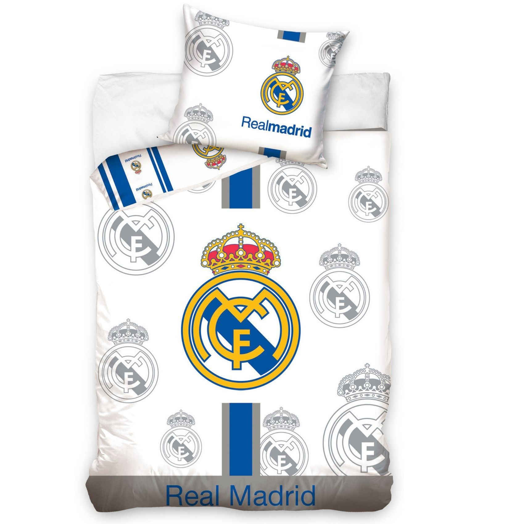 Real Madrid sengetøj 140x200 cm – Vendbart bomuldssengesæt i hvid, blå og grå
