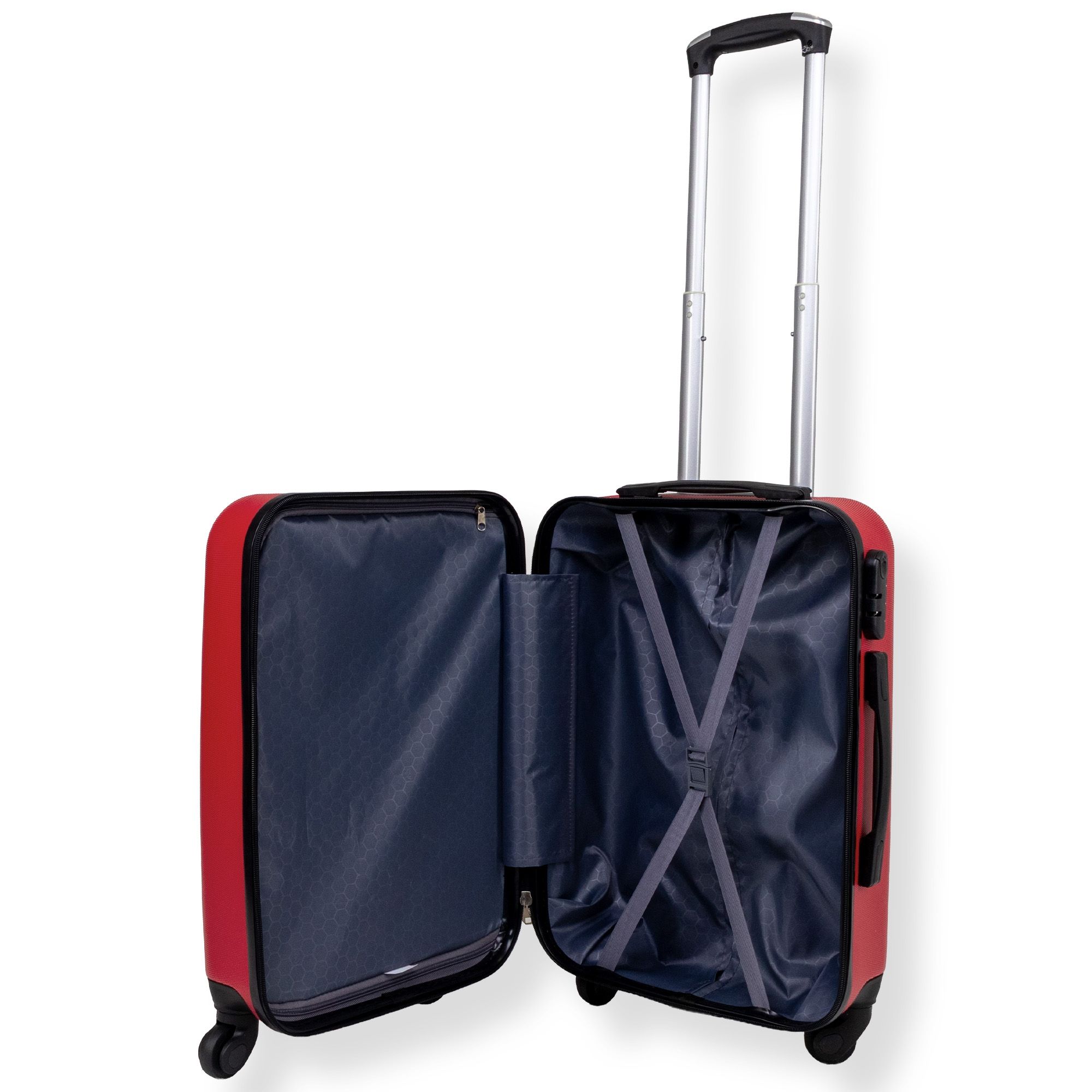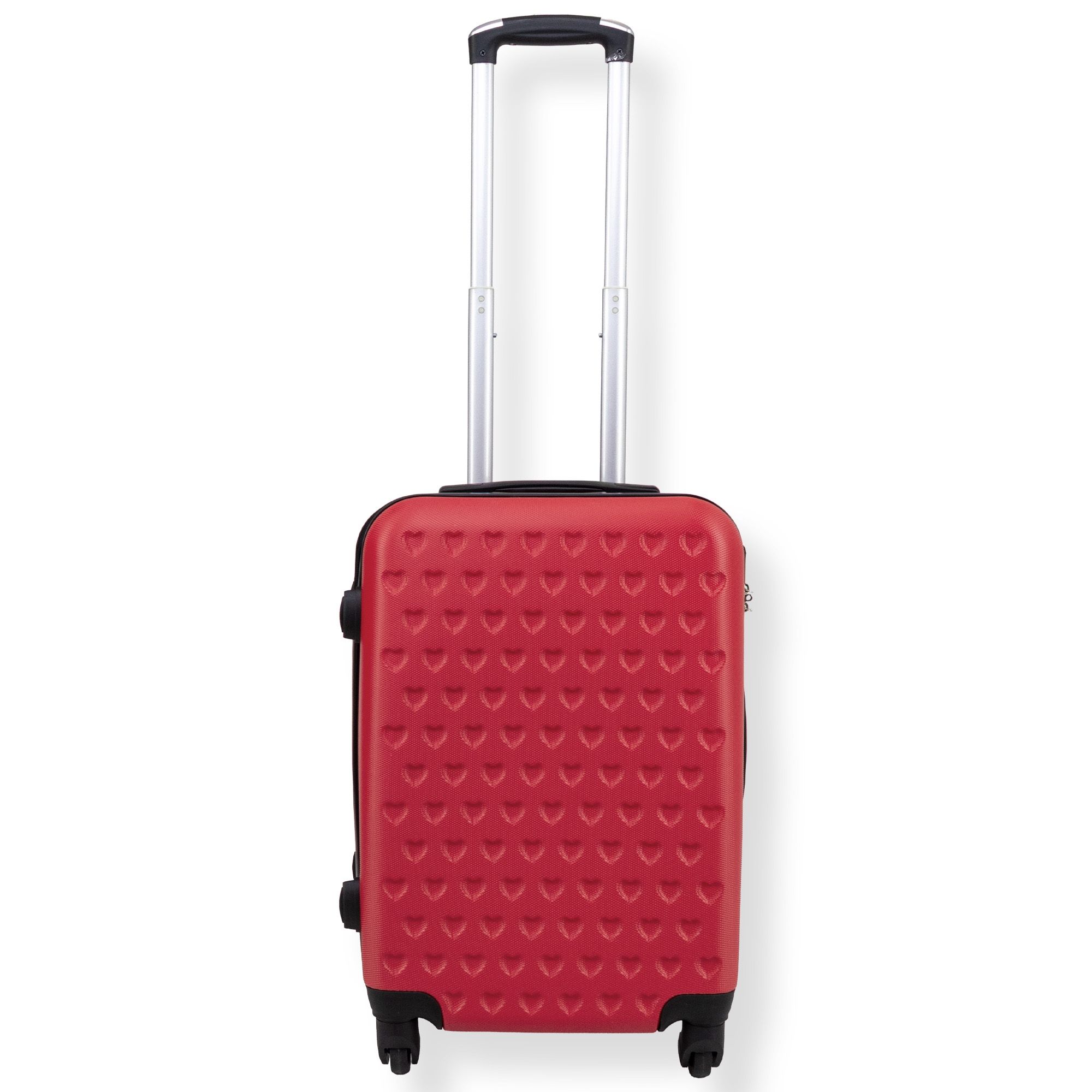 Denne røde kabinekuffert med hjerter er den perfekte rejsemakker til både korte og længere ture. Rejs nemt og sikkert med en kabinekuffert fremstillet i slidstærkt ABS plast. Materialet giver en stærk og holdbar overflade, som er modstandsdygtig overfor de hårde slag og pres, der kan opstå på f.eks. et bagagebånd. Det slidstærke materiale beskytter altså dine ejendele på hele rejsen - samtidig er kufferten let og nem at håndtere.