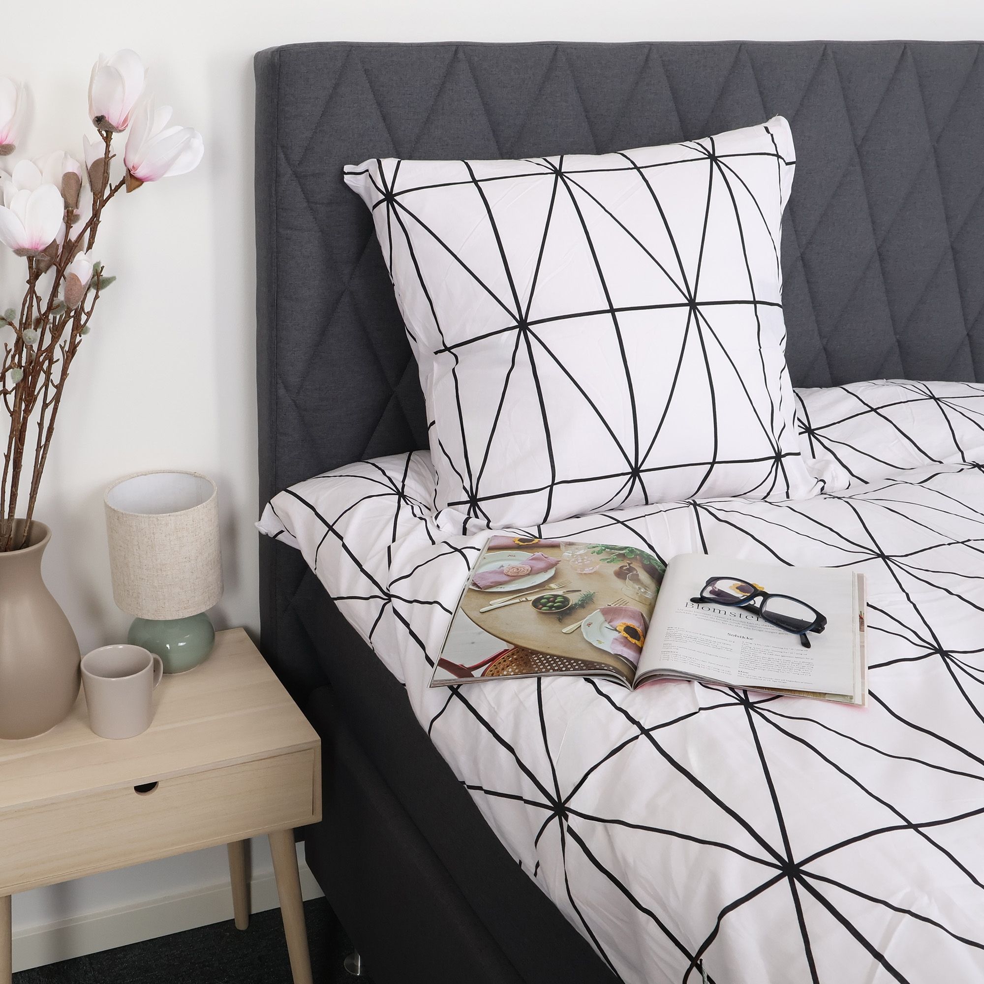 Giv soveværelset et stilrent og roligt udtryk med dette elegante sengetøj i bomuld fra Nordstrand Home. Det klassiske harlekin design i hvid skaber en harmonisk atmosfære og passer perfekt ind i både moderne og nordisk indretning.